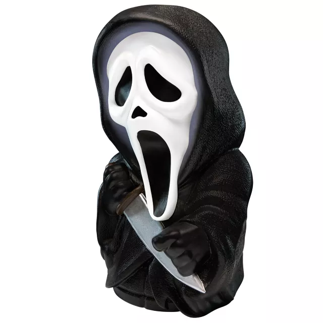 Welcome trick-or-treaters with a scary surprise using this officially licensed Ghost Face Light-Up Porch Buddy! This light-up Ghost Face decoration is complete with a glowing interior that adds an extra layer of spookiness to your porch or entryway. Get ready to give your guests a Halloween scare they won't forget!