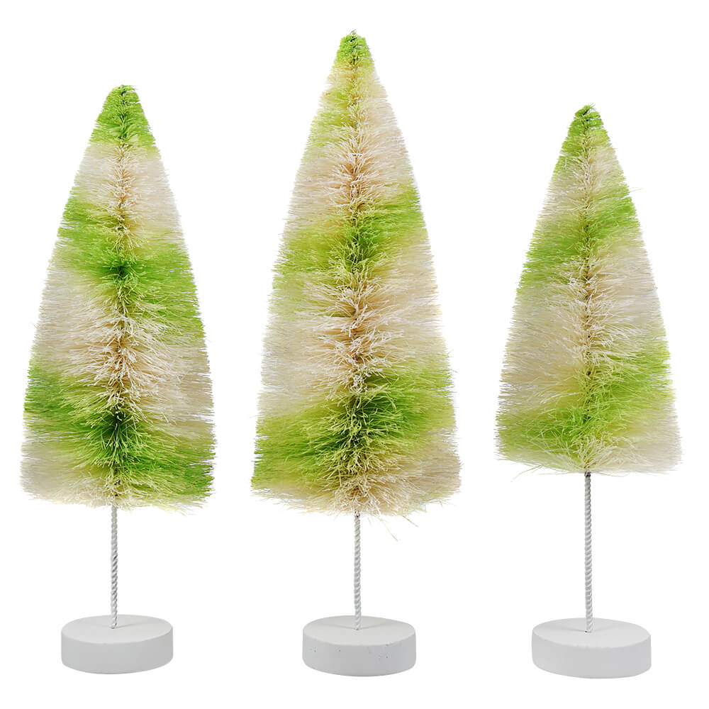 Wow! Lime stripes trees?? They look just like a popsicle, but nope! These bottle brush trees are a terrific decor set that will add a punch of color to your holiday display! Adding this set of Lime Stripes Delights Bottle Brush trees to your collection, will make decorating so easy! Because they come in a set of 3 you can display them together as the backdrop for lots of figures or split them up and dot them among your collectibles. They are so unique, the lime striped trees would look just as pretty mixed among your Easter, Christmas and Halloween holiday displays.
