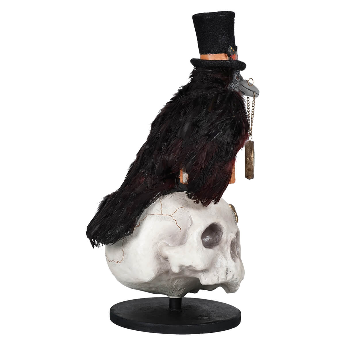 Create a mesmerizing display by showcasing the Midnight Crow On Skull surrounded by flickering candlelight and mystical artifacts and tomes, or place it on a apothecary table alongside magical ingredients and potion bottles for a more witchy vibe. The skull can be moved from side to side, so it can look spookily at anyone in the room!