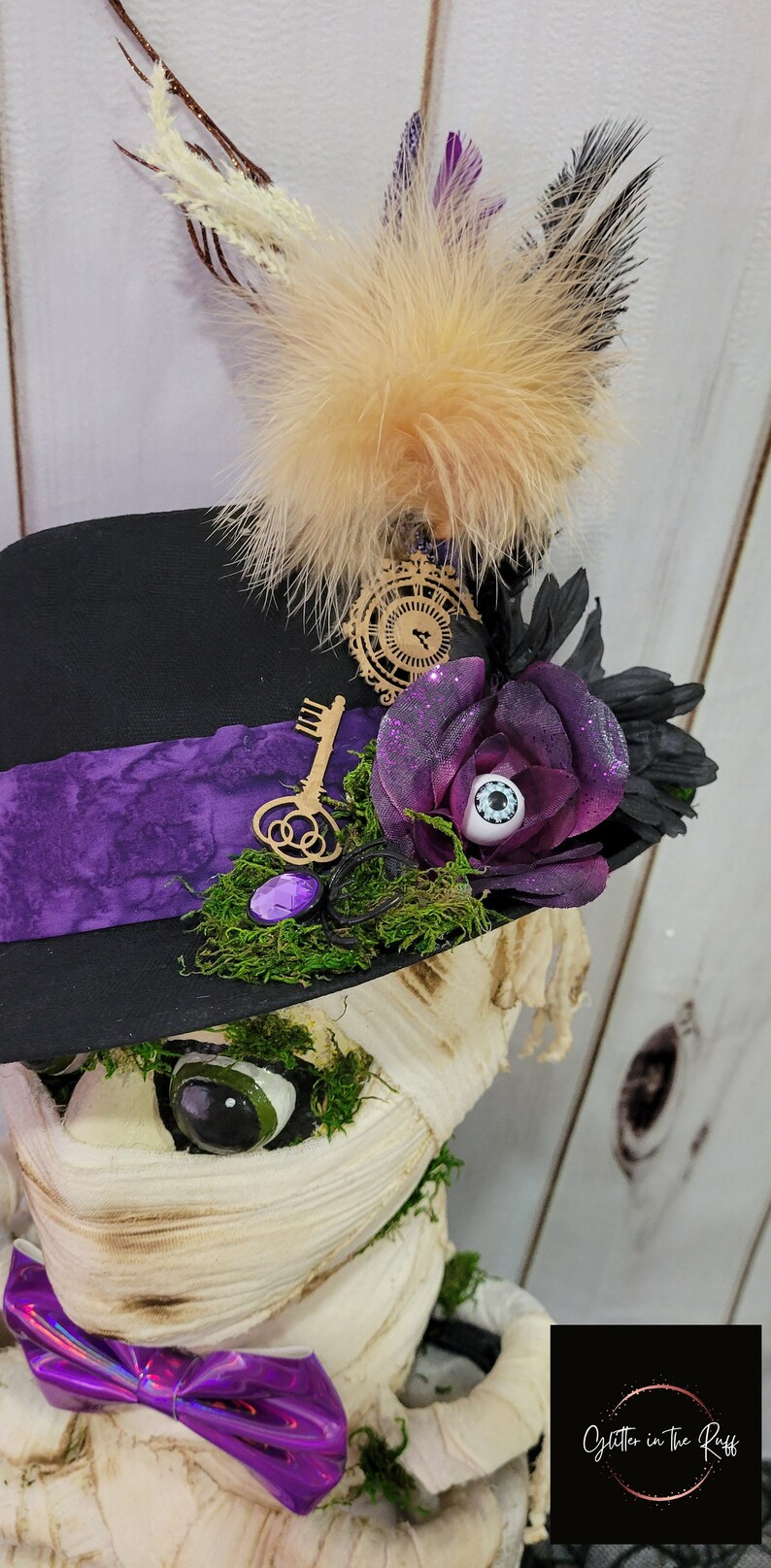 This stylish spooky fella can be placed in a wreath, centerpiece, Hallway, used as a photo prop, or as Holiday Decor.