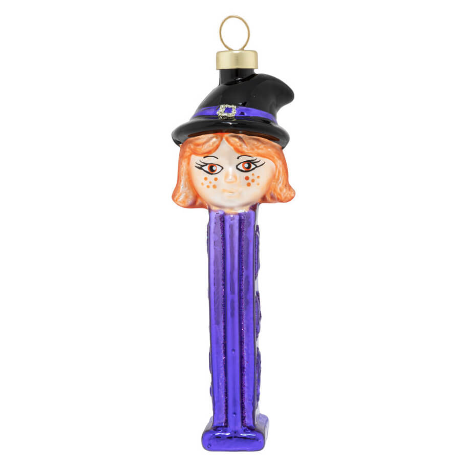 At one time or another we have all had a PEZ dispenser, this Not-So-Wicked Witch PEZ™ Ornament, which is made of glass, ready to hang on your Halloween tree or mantel garland is guaranteed to give your holiday decorations a magical hex of fun! This fantastic official PEZ™ ornament is sure to add some eye-catching appeal to your next Halloween celebration. The classic purple color witches are known for and the pointed hat make this ornament truly special. No traditional holiday tree would be complete without this thrilling addition! Now you can have a little bit of witchy wonder in every room of your home during the spookiest season of the year. Whether displayed as decoration or gifted as a fun gift to a PEZ lover, the Not-So-Wicked Witch PEZ™ Ornament is sure to bring some extra zip and zing into any Halloween atmosphere! Get yours today and let your holiday sweet tooth come alive with this fantastic festive PEZ™ ornament. Collect all of the glass ornament PEZ dispenser ornaments, including the Pumpkin and Fangs A Lot Dracula for a really fun addition to your Halloween tree!