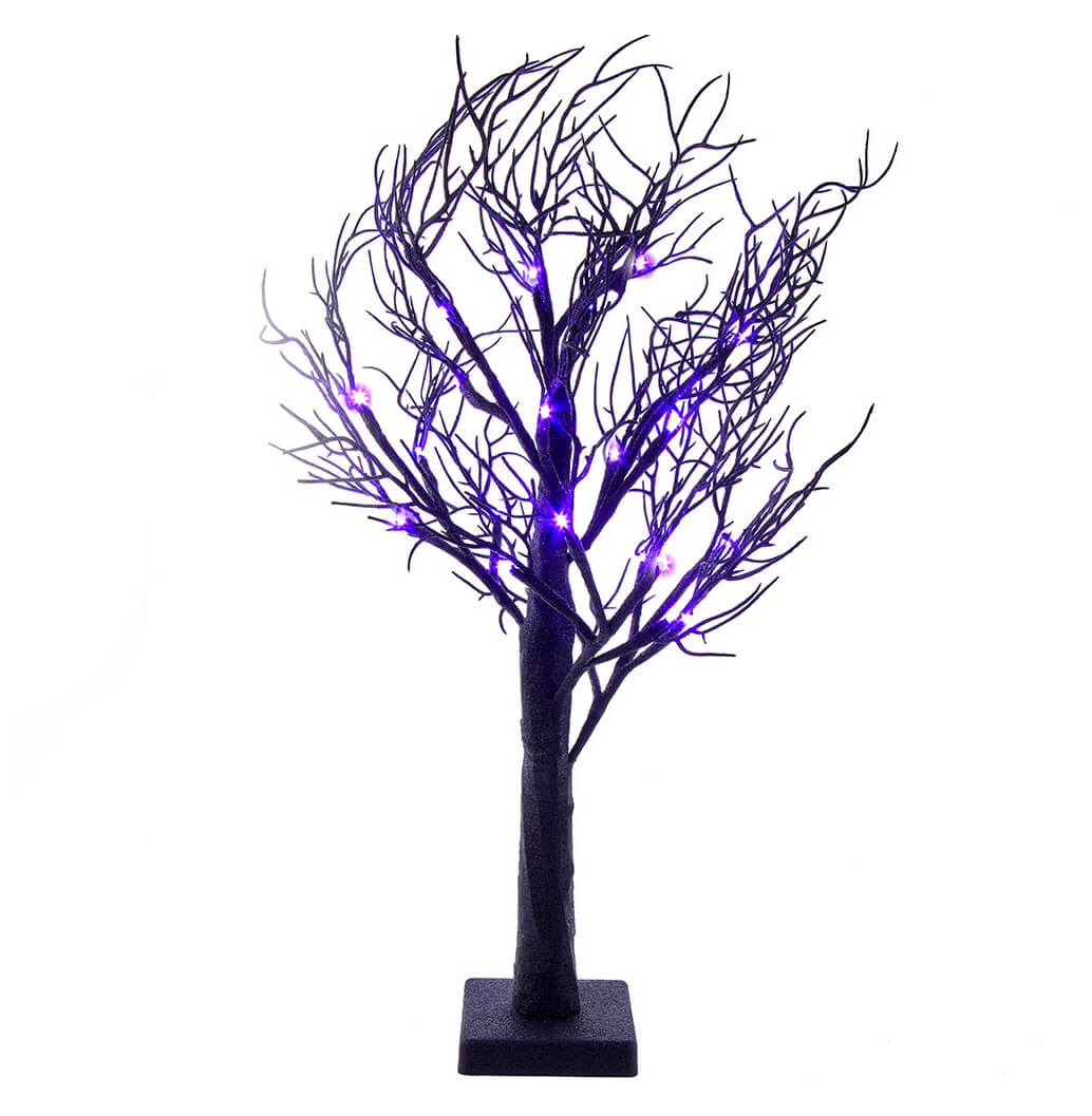 Bring a hauntingly lit piece of Halloween excitement to your home with the Purple LED Black Glittered Tabletop Tree. This 2 foot tree is sure to set you apart from more basic Halloween decor, transforming your spooky abode into an atmospheric room filled with ghastly purple lights. Whether you're looking for a tree to hang those tiny Halloween ornaments on or something seasonal that will brighten up the room, the Purple LED Black Glittered Tabletop Tree has it all! Crafted for those who dare to be different and enjoy a bit of fright in their decorations, this one-of-a-kind tree offers plenty of eerie delights that are guaranteed to keep your guests entertained. Don't wait -- get your hands on this eerily charming tabletop decoration before Halloween is over!