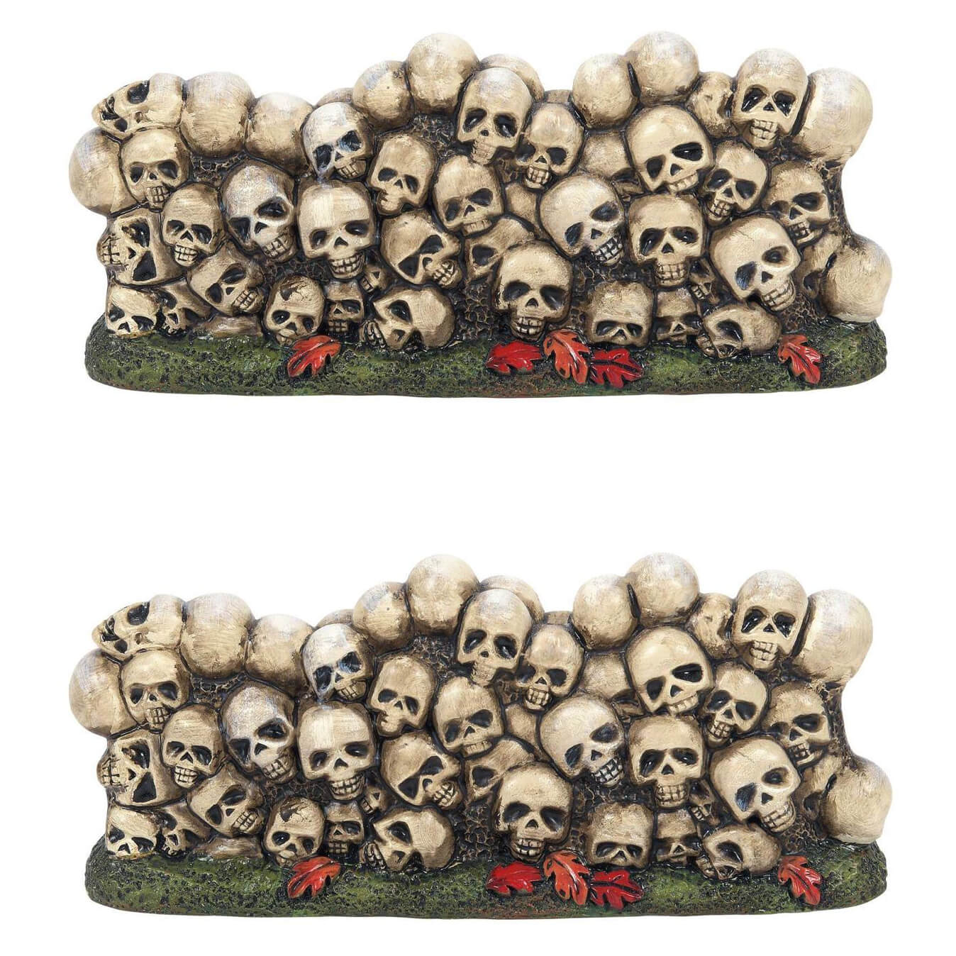 Add some bone-chilling ambiance to your Halloween village with the Scary Skeletons Wall Set, a captivating accessory by Department 56. Crafted from resin and hand-painted, this set includes two sections of walls adorned with meticulously painted skulls, creating an eerie and haunting scene.