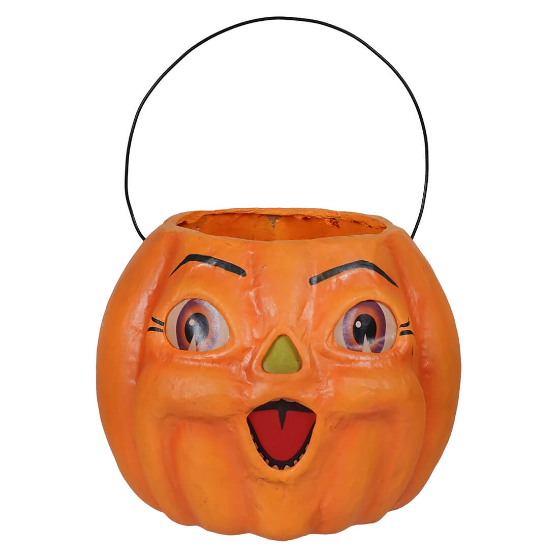 Its vintage aesthetic and quality construction will make it an instant favorite among your Halloween decor. Whether a part of your general halloween decor, in a collection of vintage Halloween candy buckets or gifted to a fellow candy bucket enthusiast, the Spunky Pumpkin Bucket is sure to delight. Embrace the vintage allure of this charming piece and let it transport you to the Halloween memories of yesteryears.