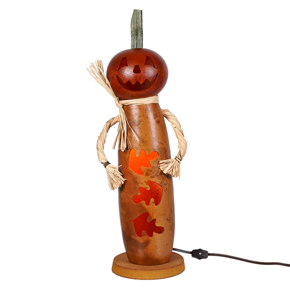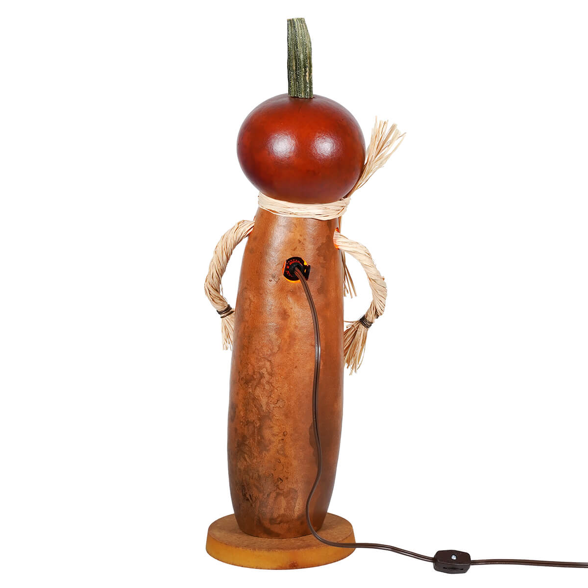 - Comes with electric light cord with On/Off switch and bulb Because this design is crafted using a natural gourd, each piece is ever so slightly different to make for a unique artisan piece with natural variance in color and size.Warning: Gourds are flammable. Do not use candles in them or place near open flames.