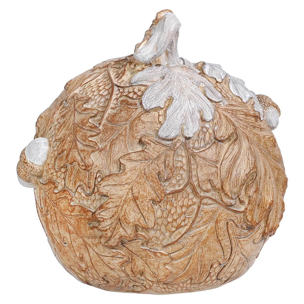 Greet your guests as they come to your home this Fall with style and warmth, with this charming Tan Round Pumpkin from K&K Interiors! An unmistakable conversation piece, this pumpkin has been enriched with embossed leaves that give a wonderful autumn feel. And you don't have to stop there, group it up with its two friends, the Tall Pumpkin (KK41558A-3) and Stout (KK41558A-1) designs, for an even more impressive display! Few decorations say 'fall' like the Tan Round Pumpkin, which is guaranteed to make your home a cozy retreat. So why not welcome in the season with this fabulous Autumn companion?