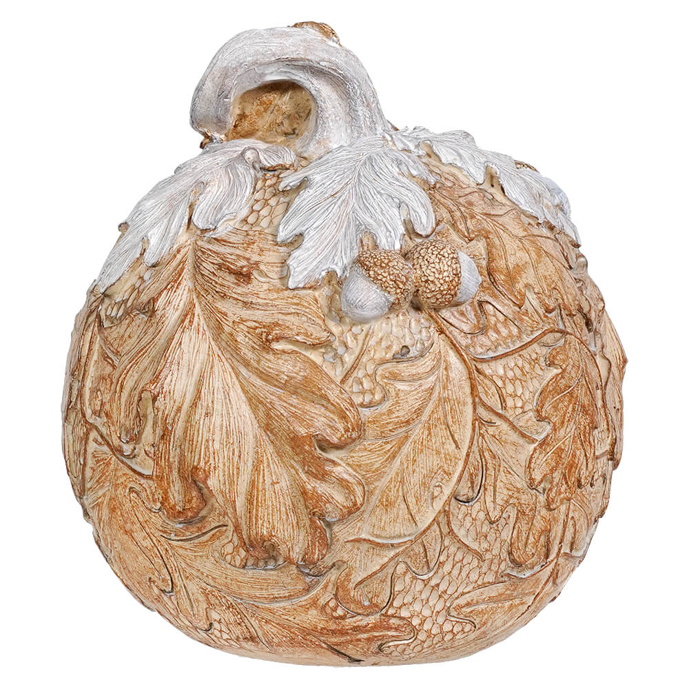 Honestly, these beautiful pumpkins with embossed leaves, acorns and heirloom pumpkin stem, look as if they have been hand carved, whittled by your favorite carver, to be displayed on their hearth, surrounded by beautiful fall leaves and garlands!