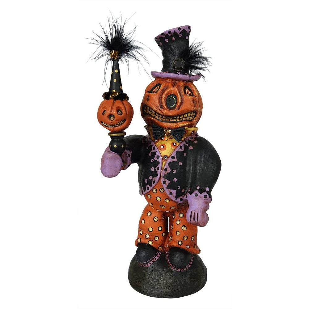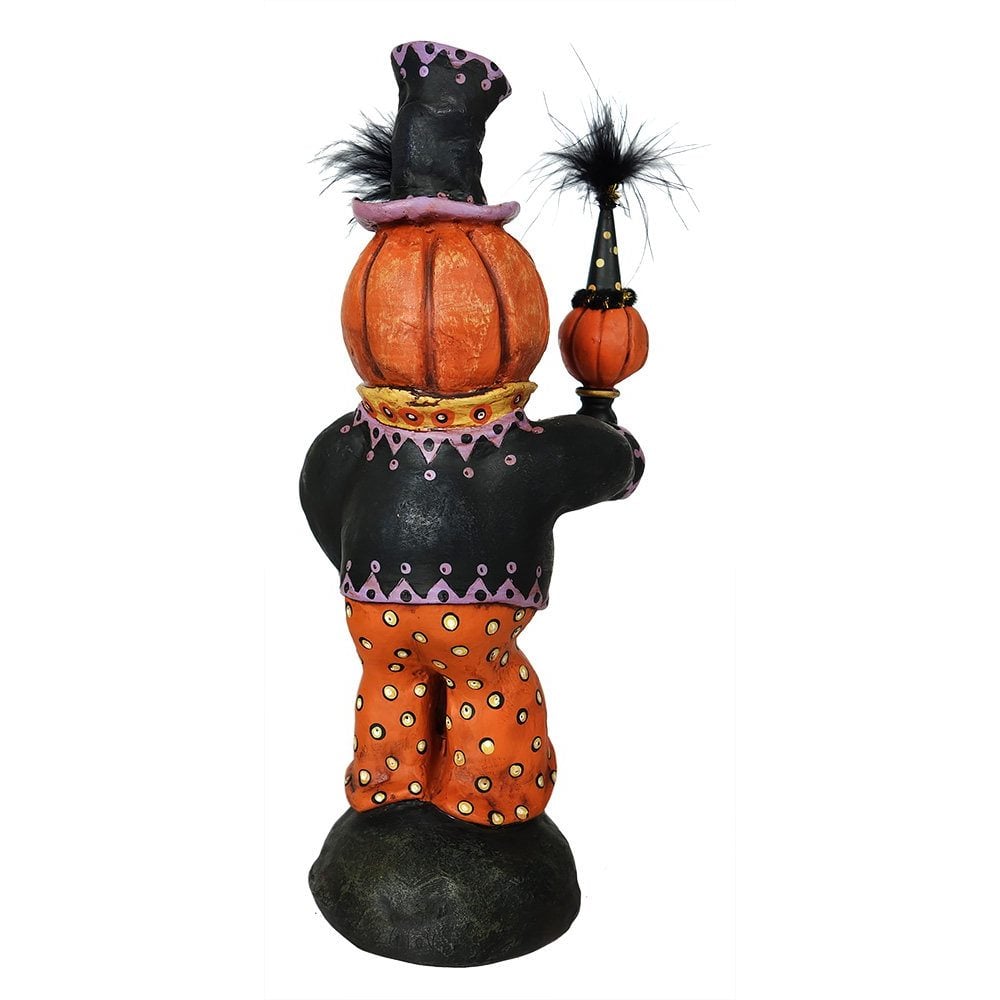A Chuck McClenning design for ESC & Company. Always one to be the life of the party, The Mayor knows how to make a grand entrance. His spotted orange trousers and fun purple and black jacket with matching gloves let you know that this guy if fun! He's got this weird quirk though where all his proclamations are made through his mini pumpkin head statuette!