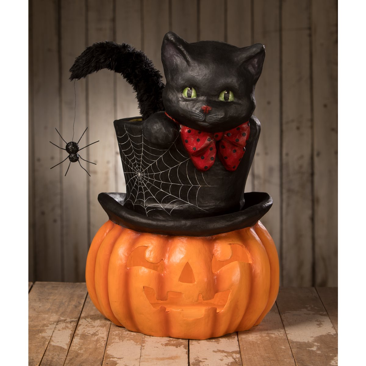 This Halloween add the Top Hat Surprise Jack O'Lantern, a delightful creation by renowned designer, Bethany Lowe to your decor! This enchanting piece captures the essence of Halloween with its spectacular and classic design.