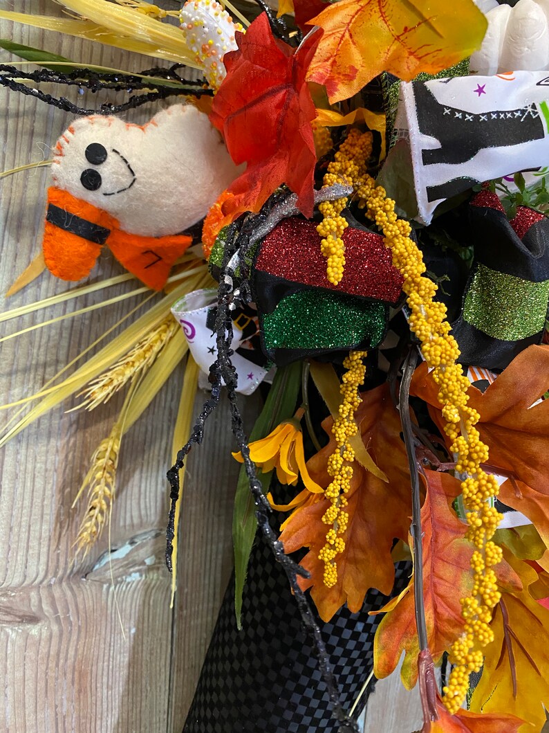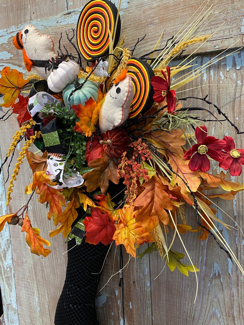 Witch ...Witch... where are you? This beautiful witch boot is ready to trim your door. She has her broom, spiders, and a witch's house.