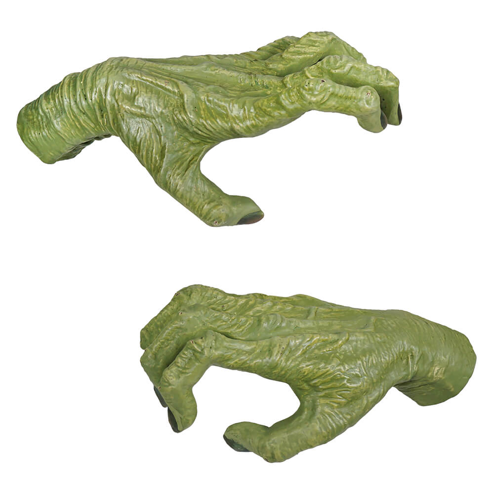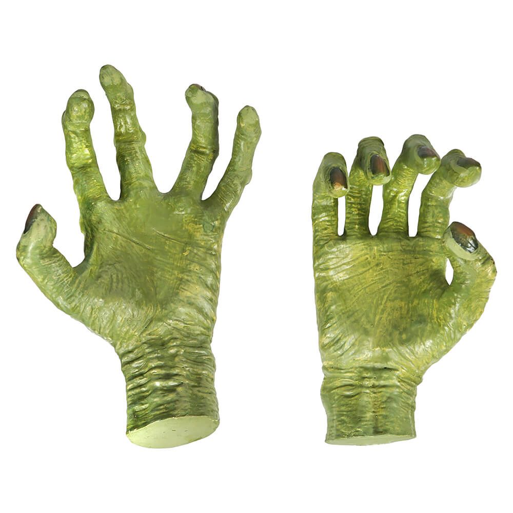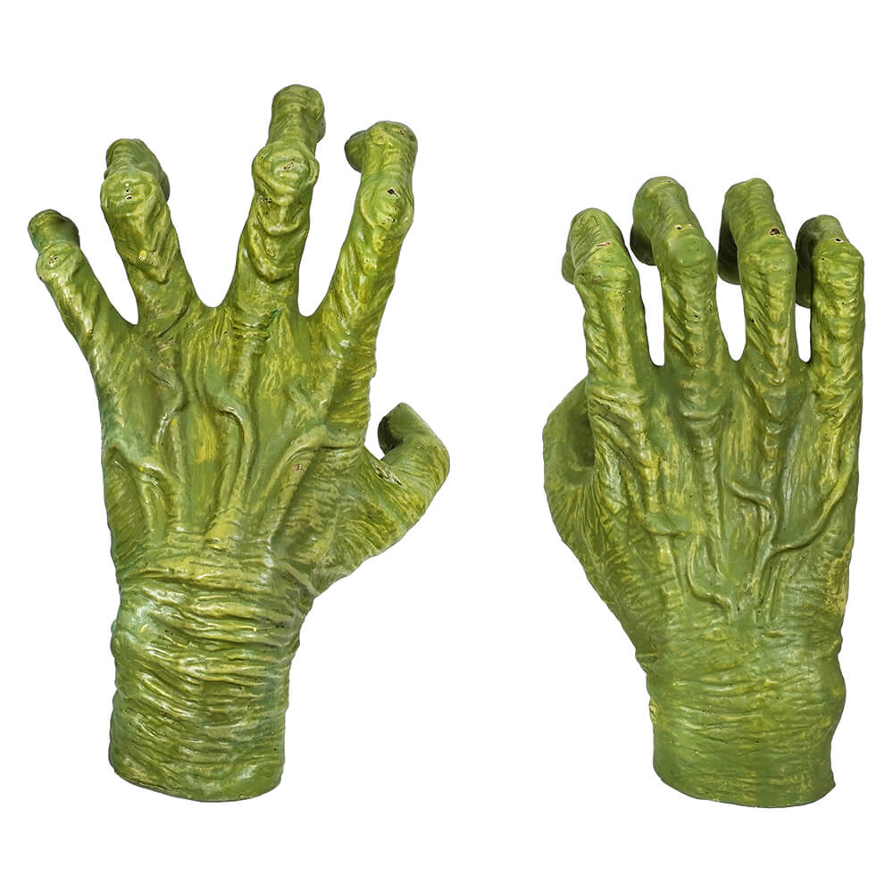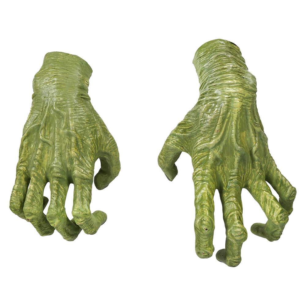 Don’t have an extra witch handy to help you decorate your house for Halloween? Don’t worry! Our Witchy Hands Set is the perfect solution! This pair of wrinkly green witch hands is sure to give your house the spooky transformation you’ve been looking for. With extraordinary detailing, they’re so realistic that you might think a real witch has come creeping around your house! The possibilities are endless when it comes to creating the perfect spooky ambiance in your home. Have these hands peek out from behind your other decor like a witch is trying to snatch something, have them hold something in their palms like the witch is offering a dubious gift or even have them look like something is trying to claw its way out of the ground. There are so many ways to display these pieces you might never use the same idea twice!