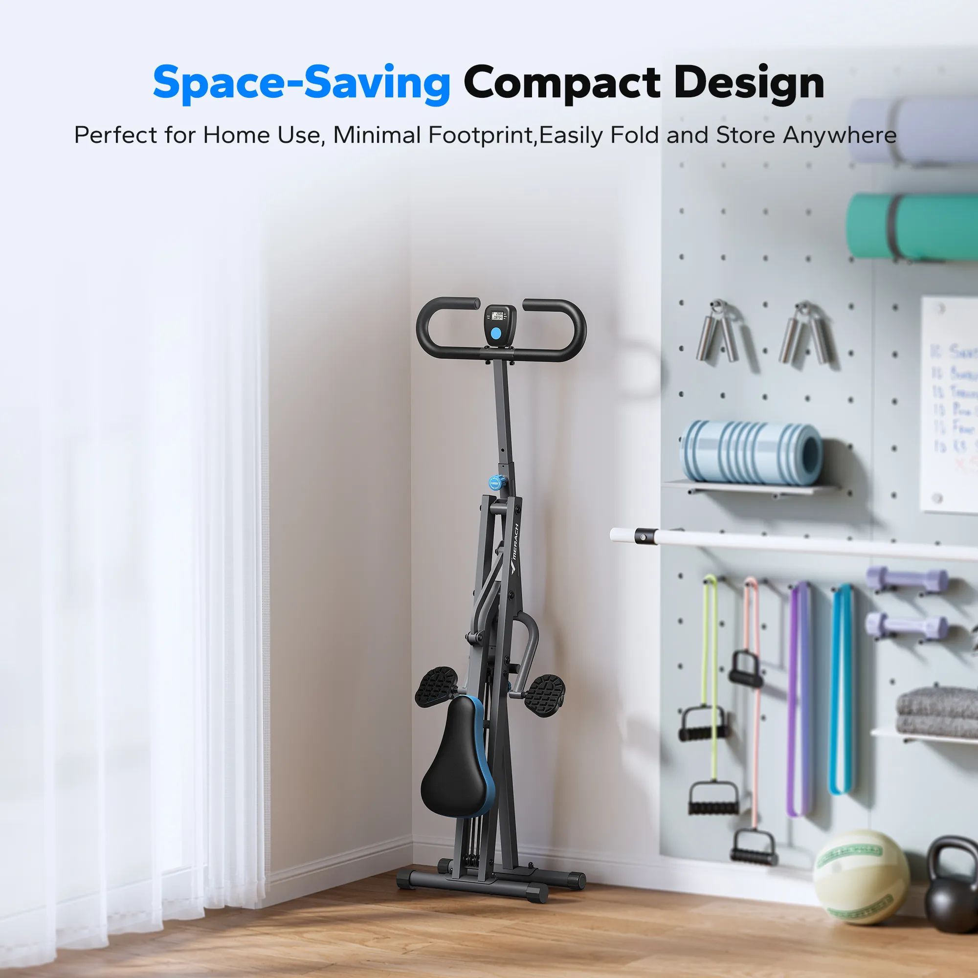 - Space-Saving Design: Our innovative foldable horse riding machine is a game-changer for anyone looking to enjoy a full-body workout without taking up too much space. With its space-saving, foldable design, you can easily store it in your home or office. In just seconds, you can fold up the machine to reduce its size to a fraction of its full footprint.