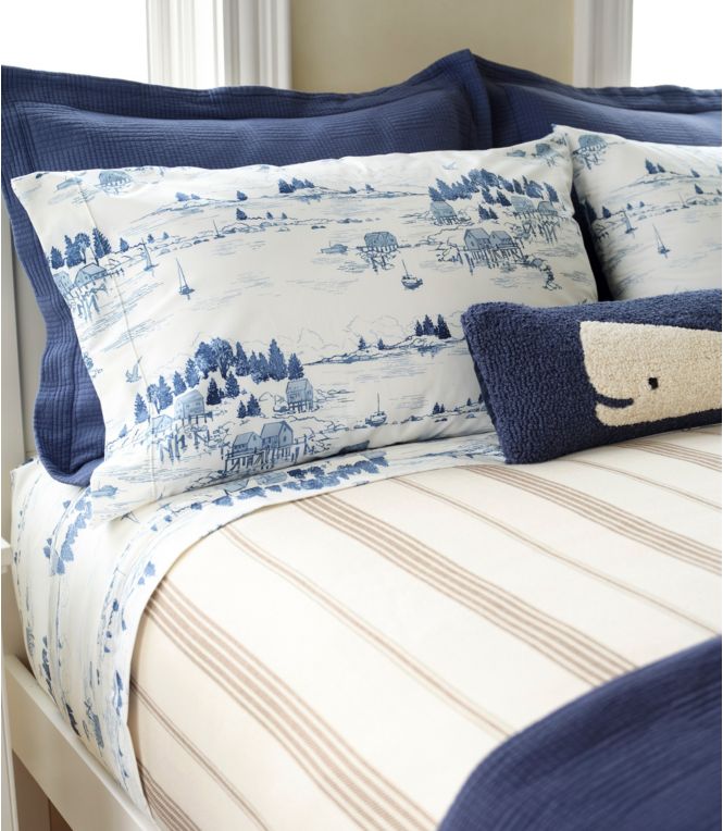 Instantly turn your bed into a coastal retreat: our cool, crisp cotton percale sheet set features a relaxing print inspired by days on the water.