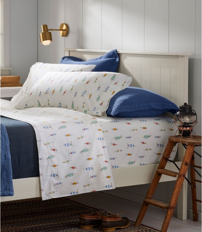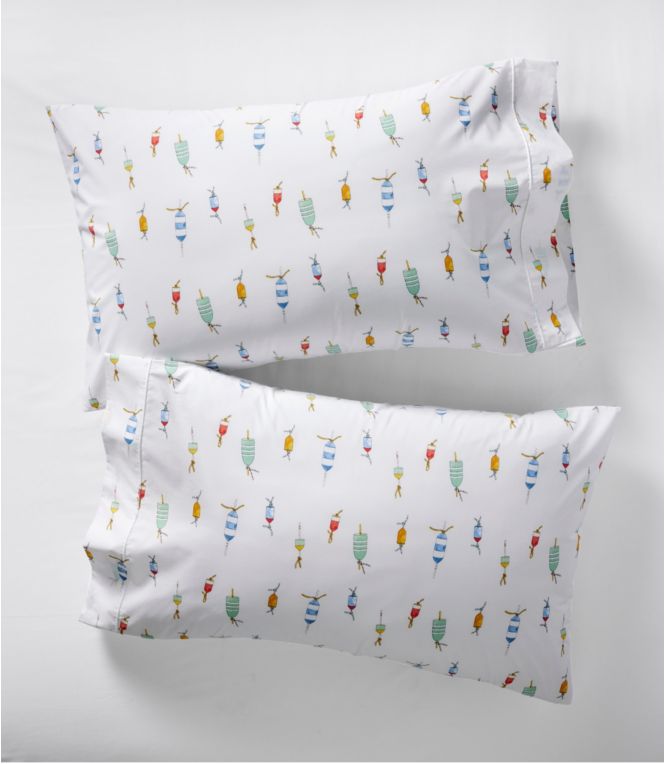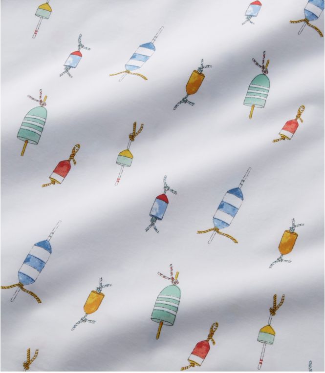 We're thrilled to partner with Sara Fitz™, a favorite Maine watercolor art studio, to bring you this exclusive buoy motif cotton percale sheet set.