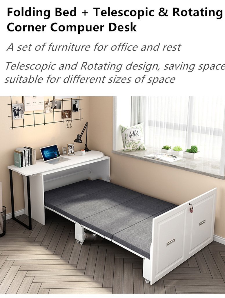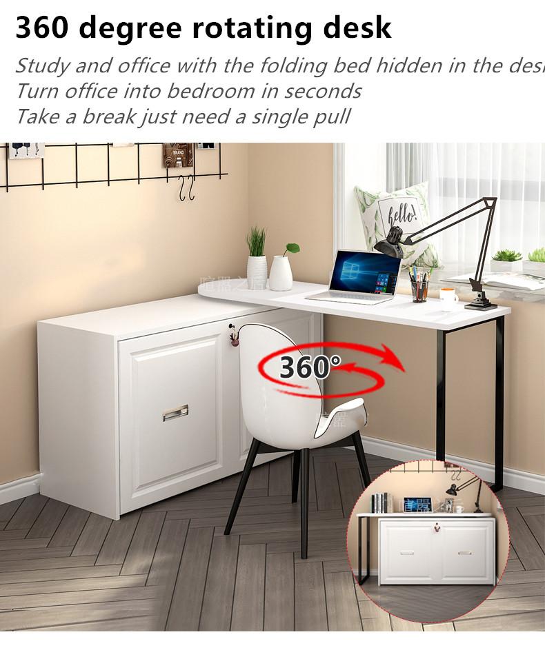 - Folding bed + rotating desk, a set of furniture for office and rest. Can be easily transformed into a bedroom. The folding bed hidden in the desk can be transformed with a single pull.