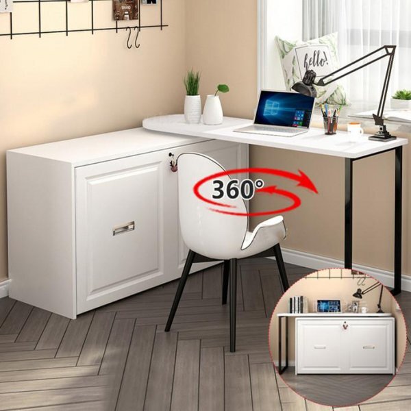 - 360° free rotating design, Super sturdy construction, large weight capacity, modern L-shaped rotating desk with folding bed.
