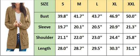 - Unique Design: boyfriend style, solid color, twist cable knit, soft and stretch fabric, two big pockets, below hip length, loose chunky cardigans for women