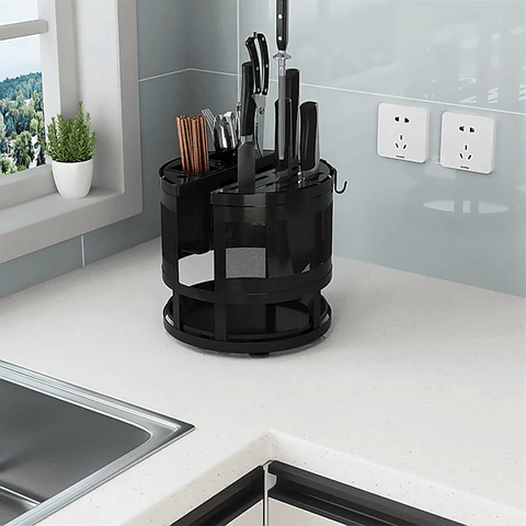 Just rotate and pick what you need. It also comes with a drainage tray to keep your kitchen worktop dry.