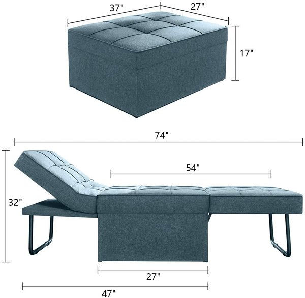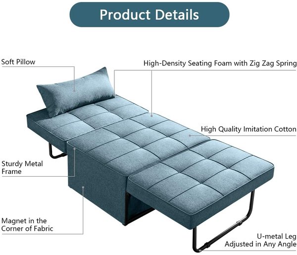 - CONVERTIBLE DESIGN:The convertible sofa bed can be used as a ottoman in normal. It can be easily and quickly converted into a sofa, lounger or a bed to meet your various and versatile needs and no longer worry about unexpected guests.