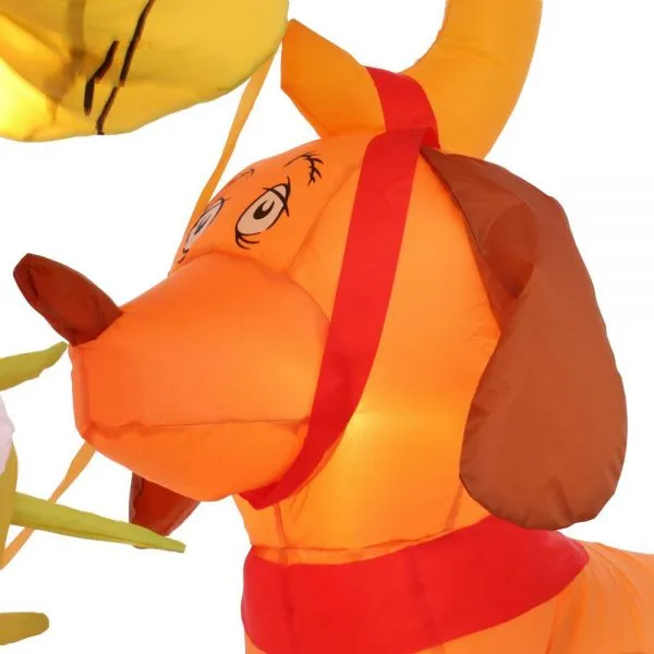 Incorporate the holiday spirit into this balloon-like scene. The despicable Grinch was all smiles. Max is unwilling to plan to steal Christmas for his friend. The internal LED lights produce a magical, eye-catching glow at night. Interesting Christmas decorations will swell in an instant. Just plug in the power, put your feet down, and watch the holiday cheers in front of your eyes. This inflatable device is made of iron, polyester and plastic, ensuring entertainment throughout the season.