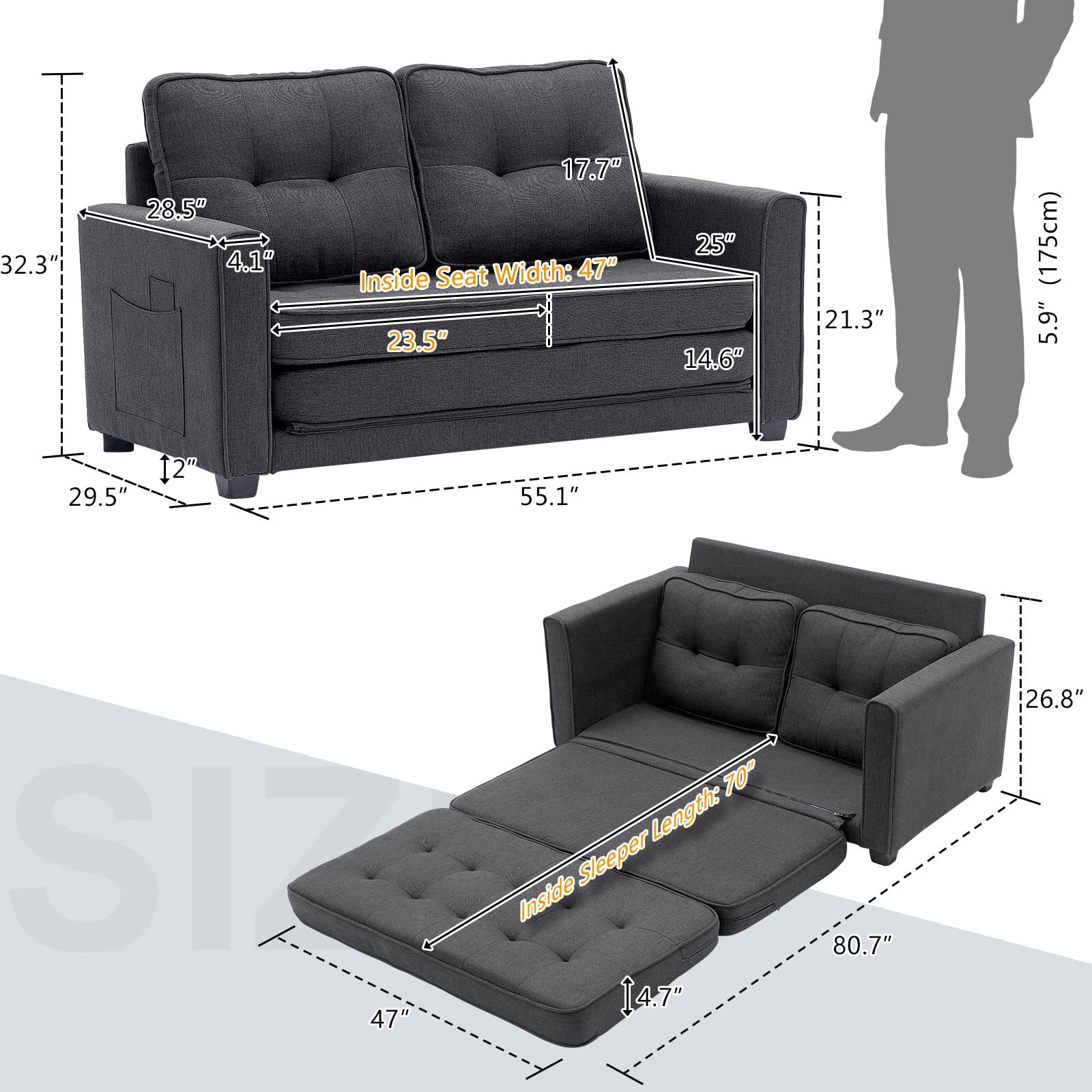 80in Loveseat Sleeper Convertible Loveseat Sofa Bed Black/Navy Blue/Dark Grey/Light Grey/Teal Blue