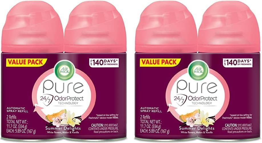 - Refills for use in Air Wick Automatic Air Freshener spray gadgets. The sprays bursts at 9, 18 or 40 minutes settings to achieve desired fragrance level