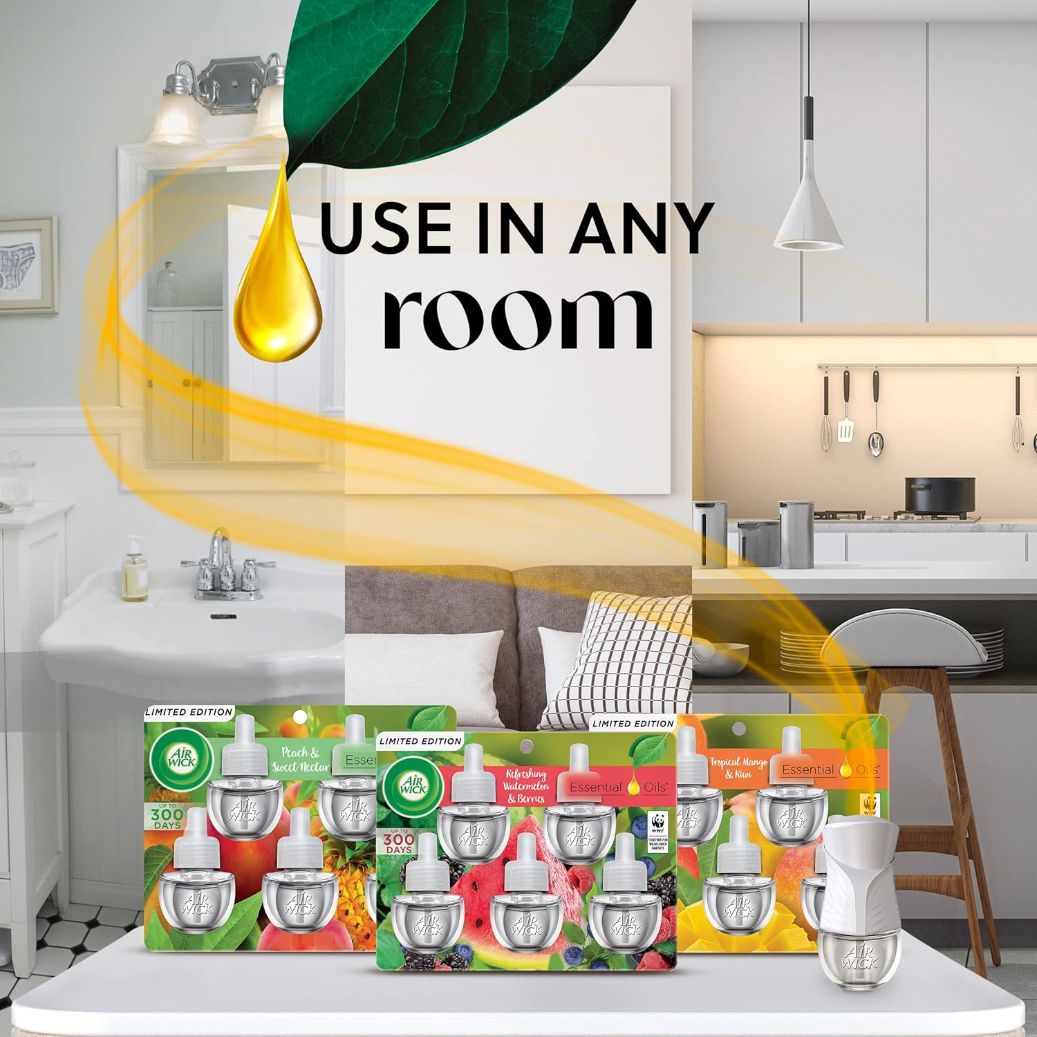 - WARMER: Easy adjust warmer with 5X fragrance settings. Refills are compatible with all versions of Air Wick plug in warmers