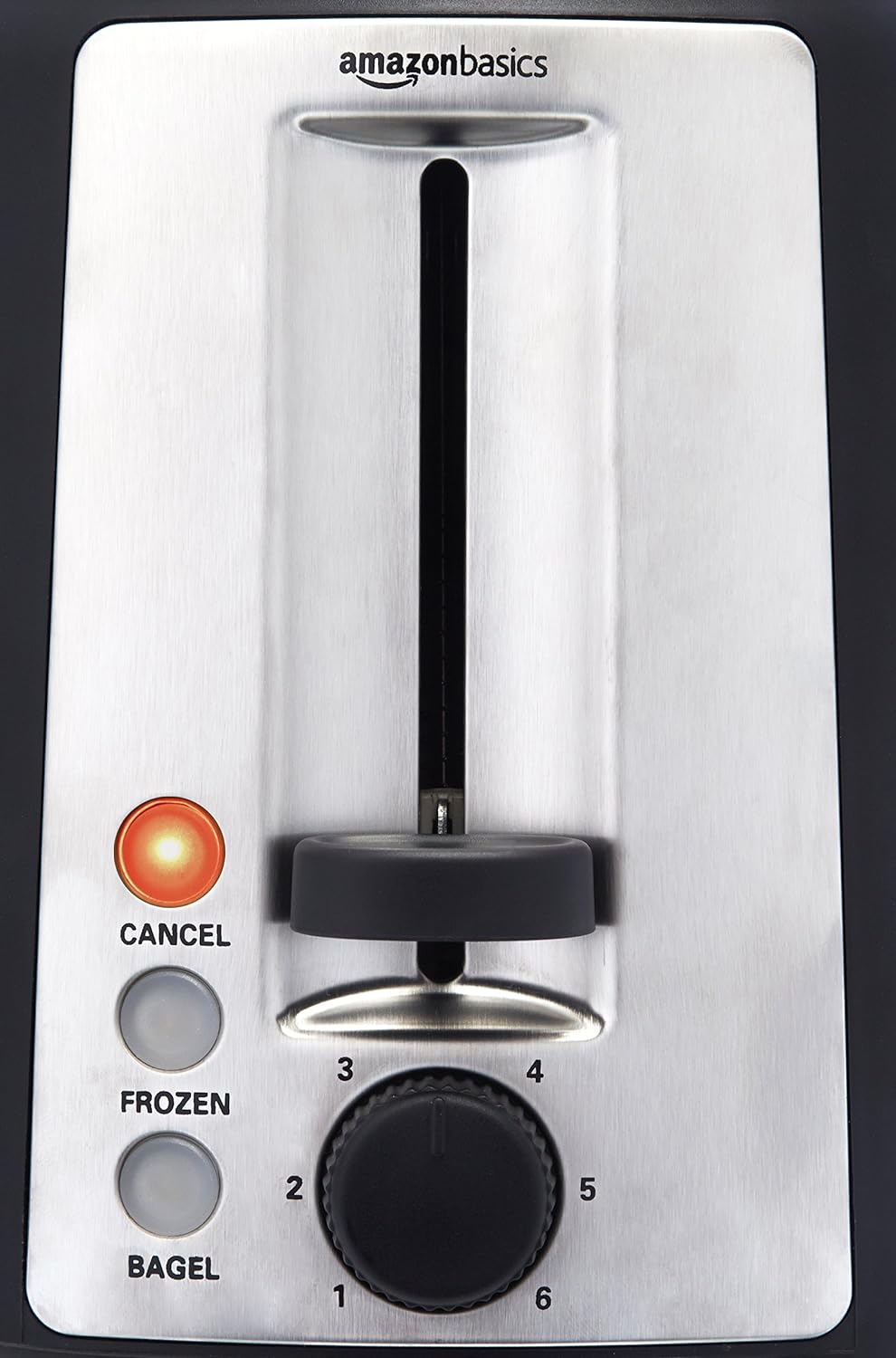 Amazon Basics 2 Slice, Extra-Wide Slot Toaster with 6 Shade Settings, Black