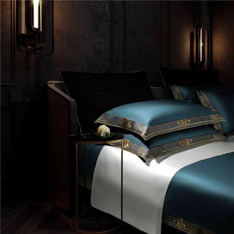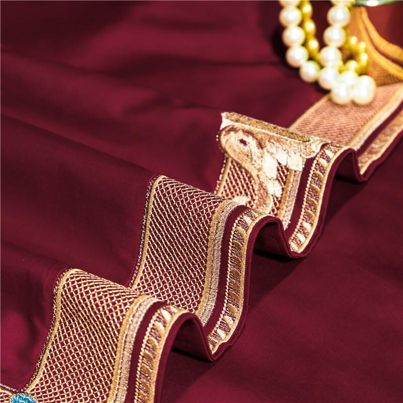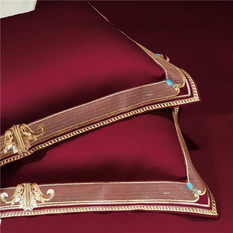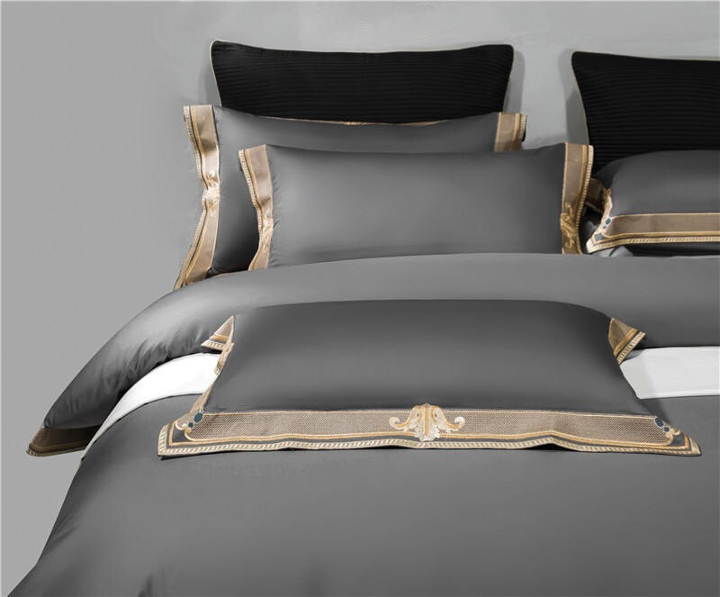Anahi Embroidered Motif Border Egyptian Cotton Duvet Cover Set