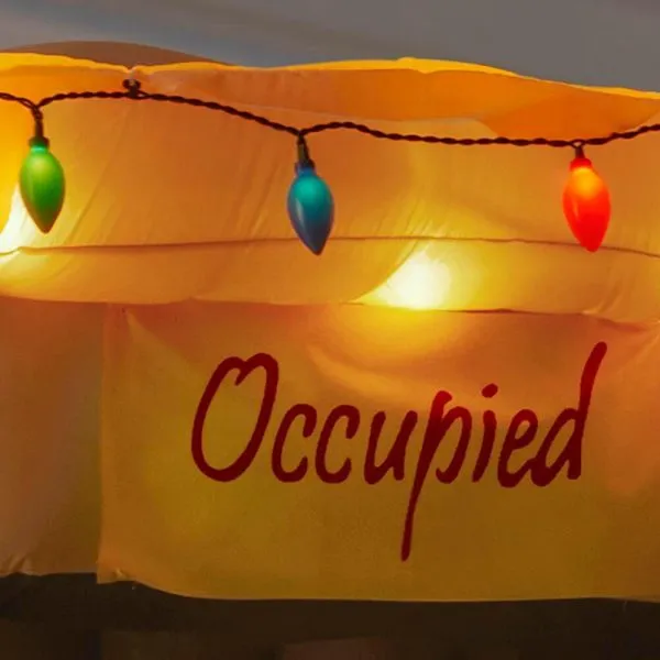 Add festive humor to your holiday display with this inflatable airblown Santa. This funny character is seen coming out of the outhouse for a unique touch. From the colorful string lights along the top to the toilet paper roll on the side, this scene is hilariously perfect down to the last detail. Internal LED lights produce a magical, eye-catching glow at night. It self inflates in moments. Simply plug in, stake down and watch the holiday cheer unfold before your eyes. This inflatable is made of iron, polyester and plastic to ensure season-long enjoyment.