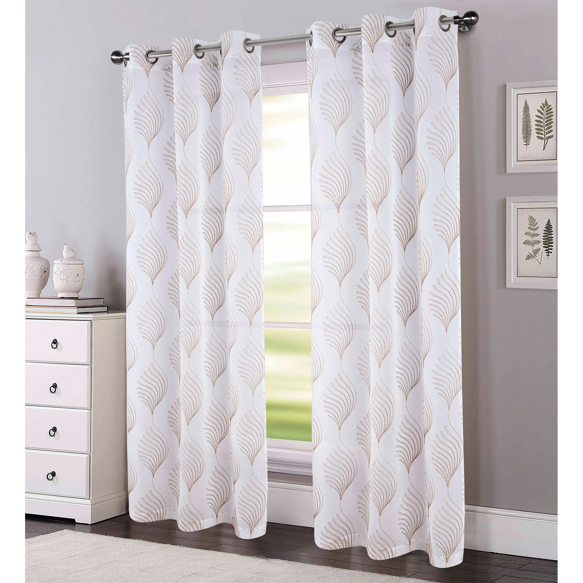 Upgrade your windows and elevate your home's ambiance with the Aniston Sheer Embroidered Grommet Window Panels.