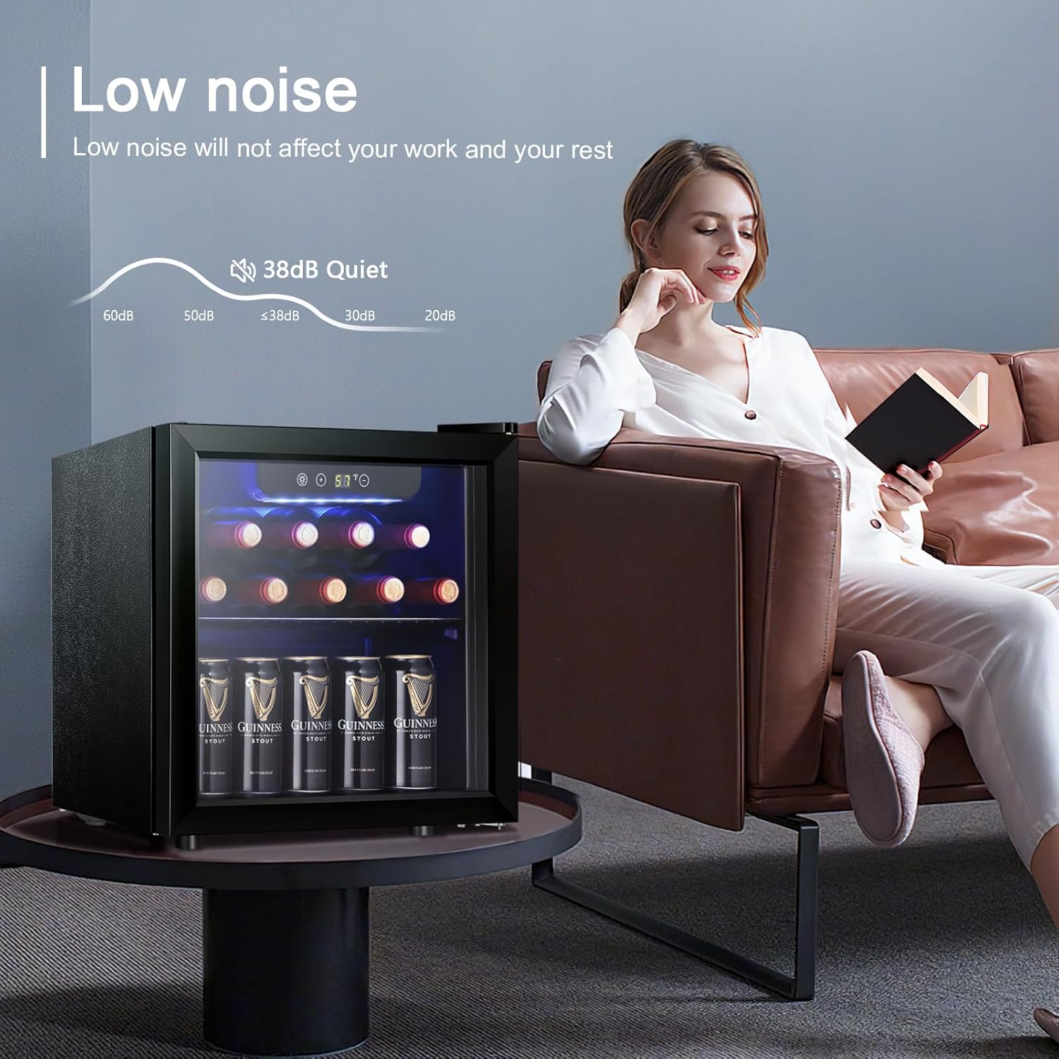 - NO VIBRATION and QUIET: Equipped with an advanced cooling system that will keep your beverages at the right temperature. With no disturbance to its natural occurring sediments. Equipped with Movable Black Shelves, Glass Door and Adjustable Leveling Legs.