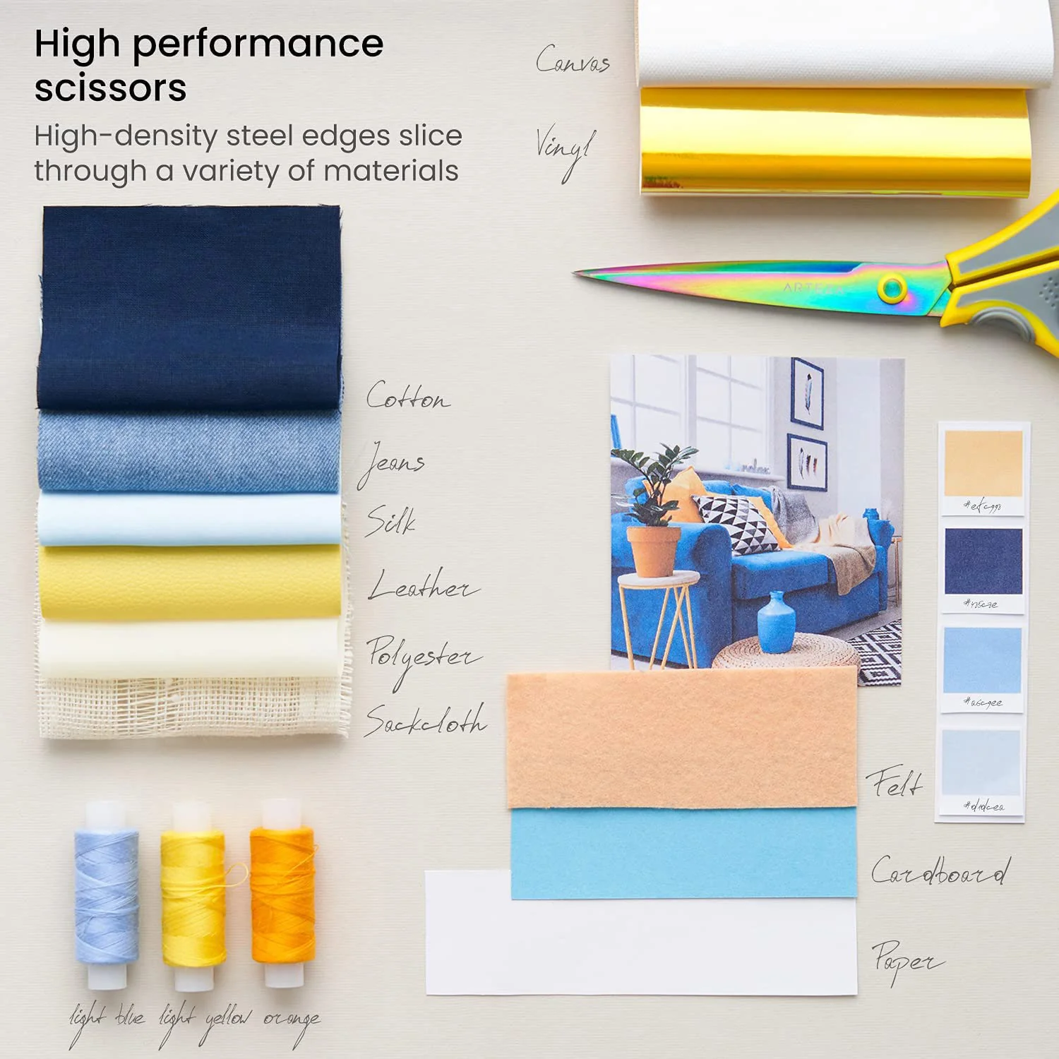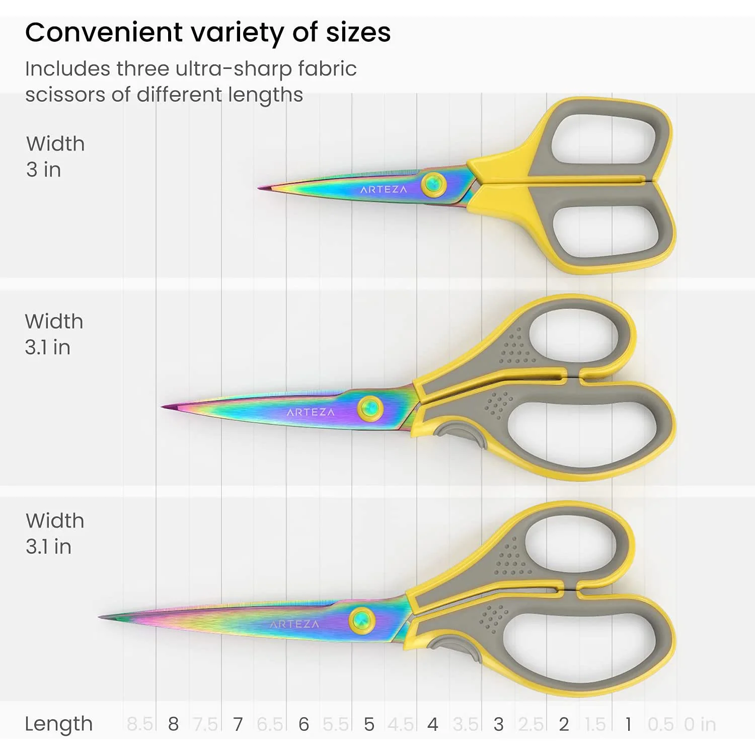 Whether you're a professional seamstress or a hobbyist crafter, sharp, durable fabric scissors are essential for any sewing kit. The ARTEZA Titanium-Coated Stainless Steel Fabric Scissors, Set of 3 are the perfect choice for all your fabric cutting needs.