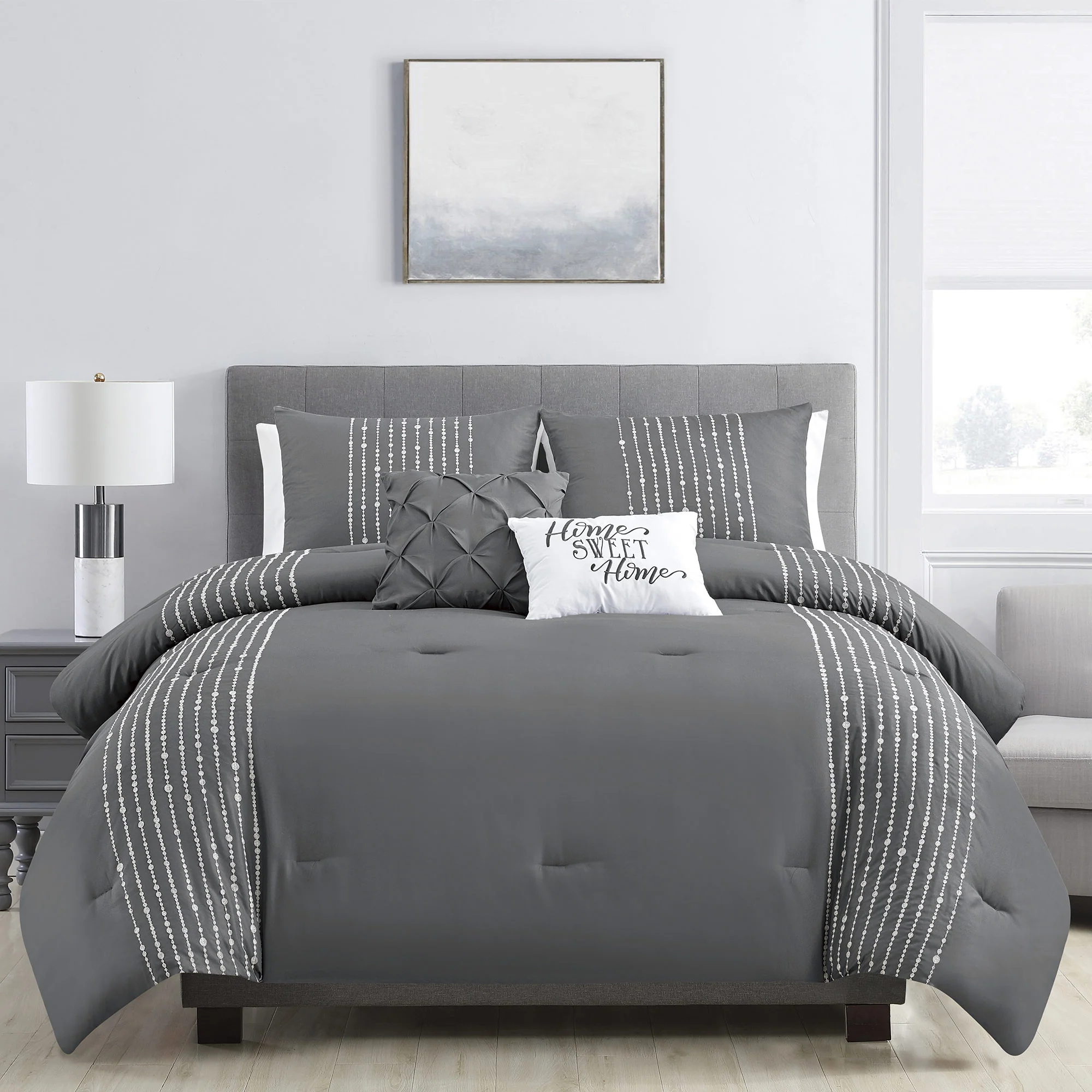 Nestle into a blissful slumber with the Ava Embroidered Comforter Set, where cozy comfort meets heartfelt charm. This 5-piece ensemble isn't just about plush softness (thanks to the 100% polyester construction), it's about creating a personalized haven in your bedroom.