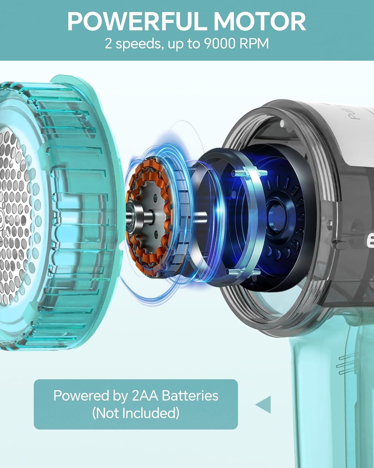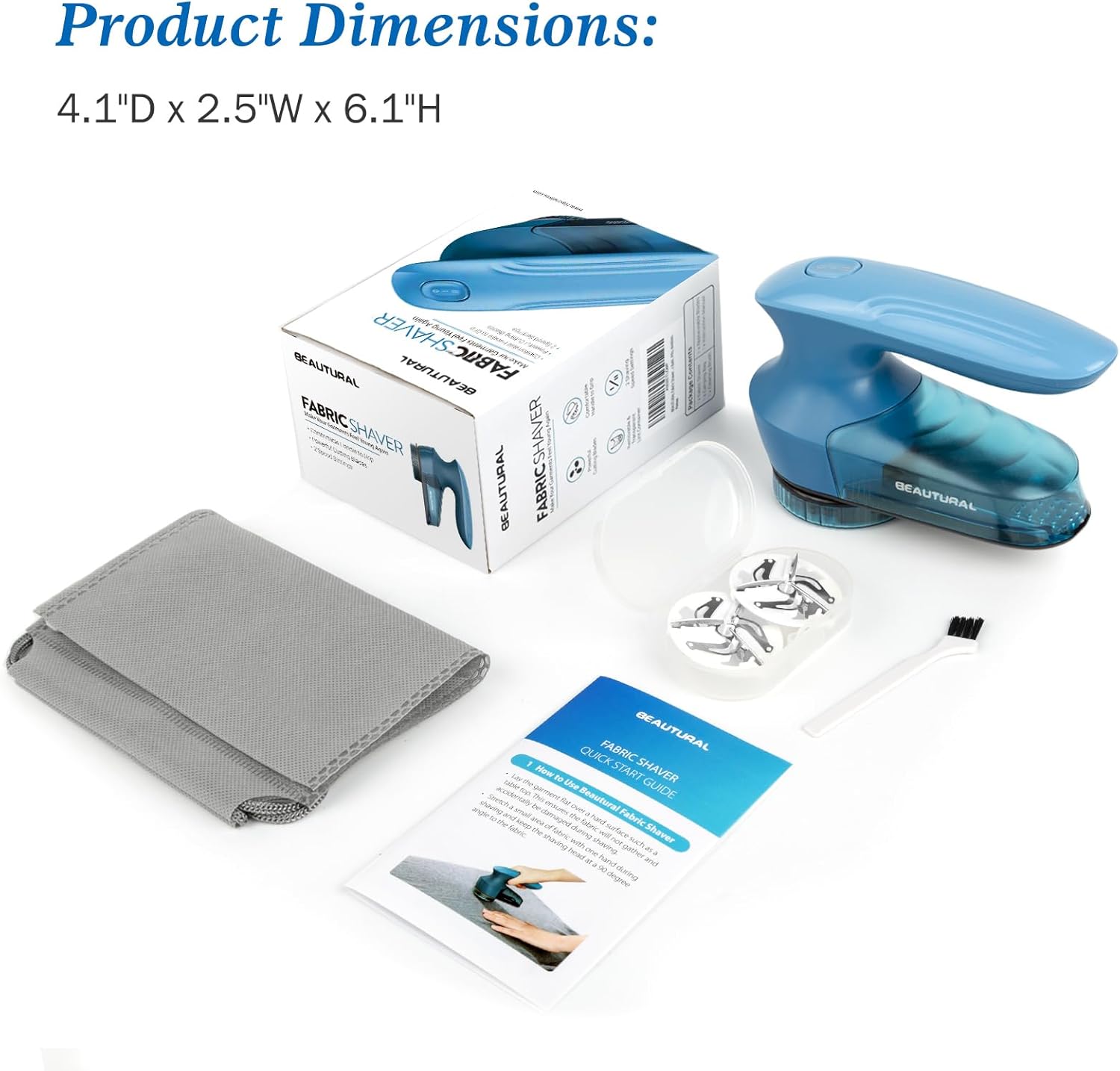 • BEAUTURAL Fabric Shaver and Lint Remover, Sweater Defuzzer with 2-Speeds, 2 Replaceable Stainless Steel Blades, Battery Operated, Remove Clothes Fuzz, Lint Balls, Pills, Bobbles