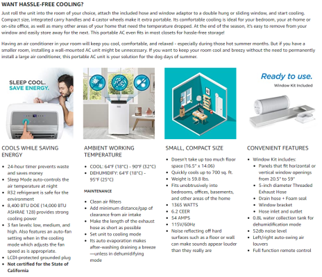- Impressive Features: Set the temperature just right with this ac portable air conditioner. Our ac unit portable also has a slide-out washable filter, auto water evaporation, & 24-hour timer.