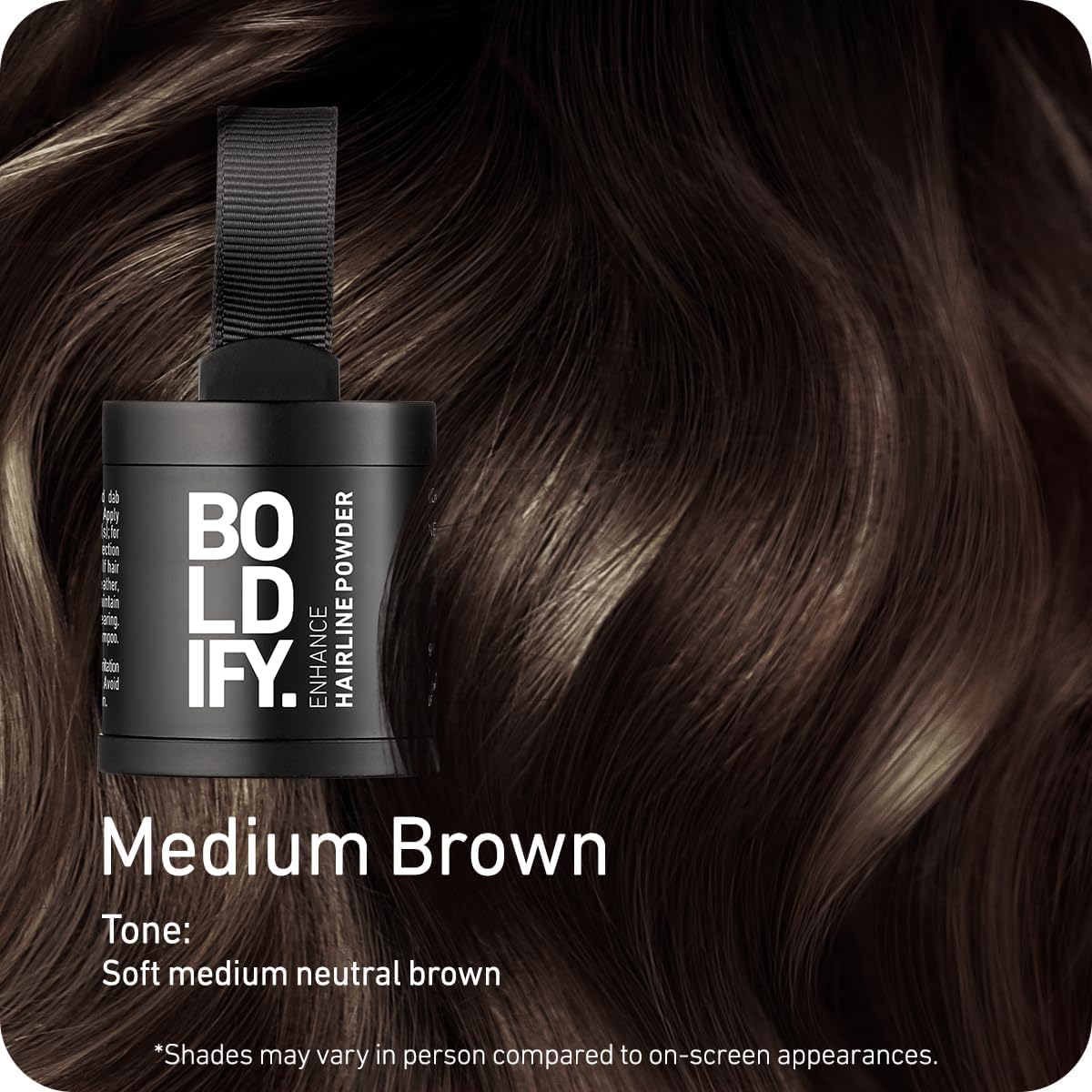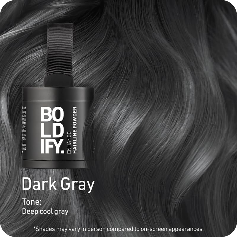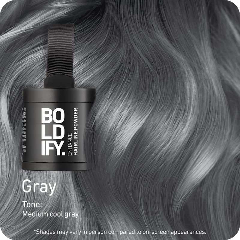- Instant Coverage, 48-Hour Guarantee - Locks on Until You Shampoo: Hair loss? Skip the embarrassing all-day touch-ups. BOLDIFY is the ultimate hair shadow powder - locking tightly to your follicles and covering your scalp, without clogging pores, for that full-bodied, knock-out look that stays put until your next shampoo. Use by itself or combine with BOLDIFY Hair Fibers for thinning hair for next-level coverage. Works great for grey coverage, rootline touchups, and brightening highlights, too!