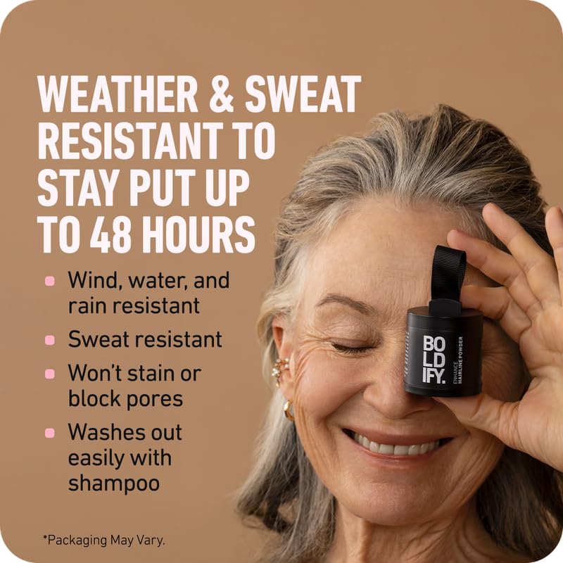 - The BOLDIFY Promise - Supercharge Your Hair & Happiness with BOLDIFY hairline powder. We know you’ll love how our proprietary, gunk-free, 48-hour formula provides all the long-lasting coverage you need -- or you keep the bottle, and we’ll provide a full, prompt refund. Whatever makes you happiest!