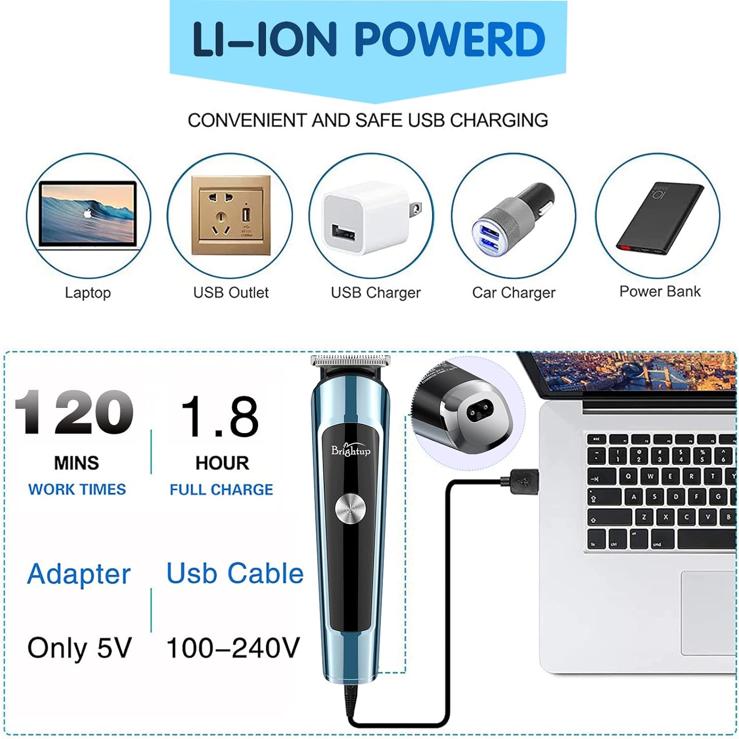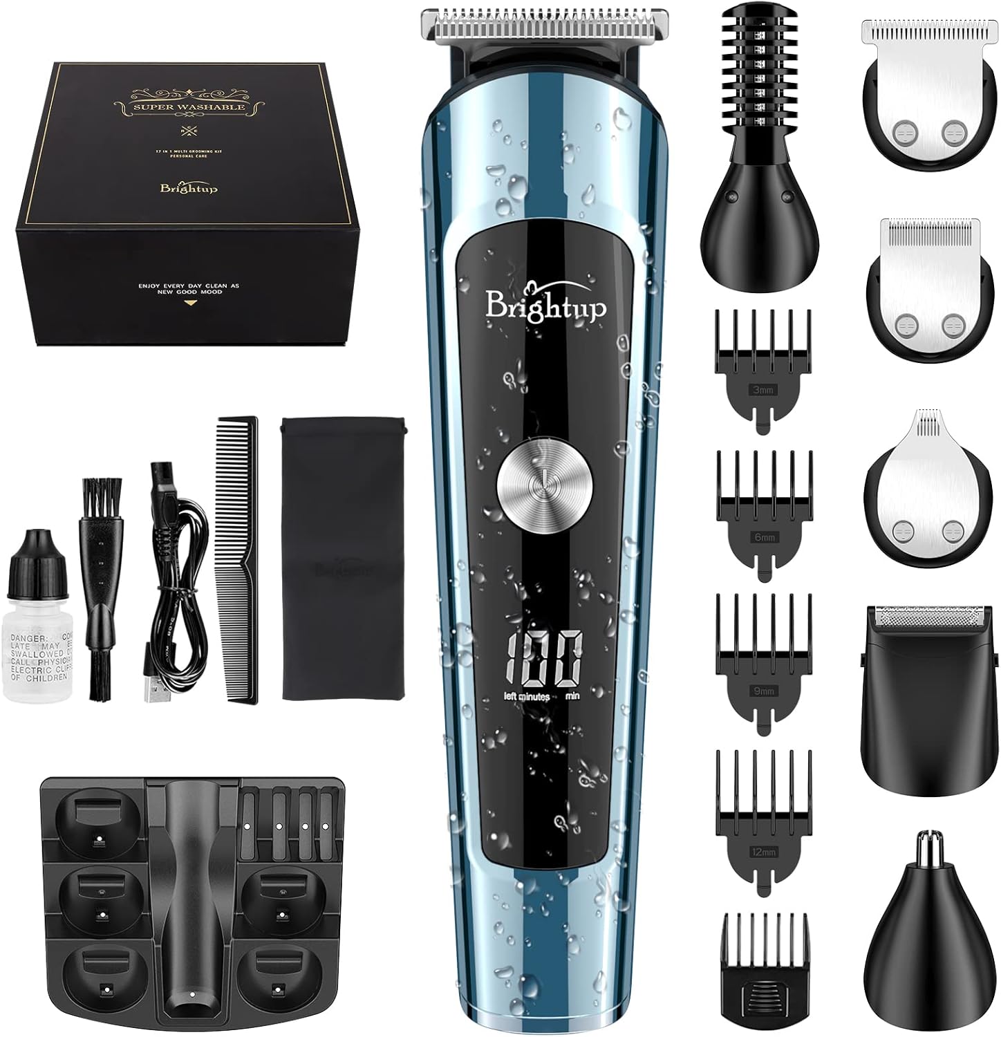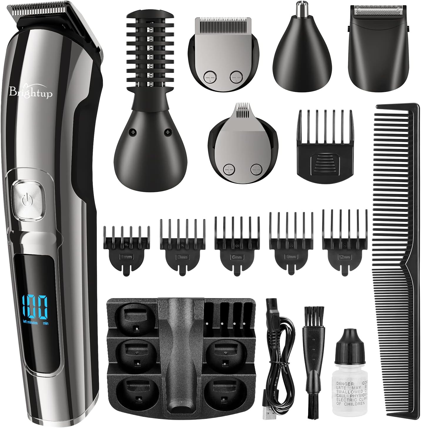 - All in One Beard Trimmer for Men Kit: Our Brightup Manscape all-in-one kit is designed for precision beard trimming and includes 6 trimmer heads and a stand base for easy organization. It also comes with 6 hair trimmer combs that allow you to control the length and style of your beard, body, face, nose, ear, eyebrows, sideburns, neck, groin, leg, pubic hair, ball or other private parts.