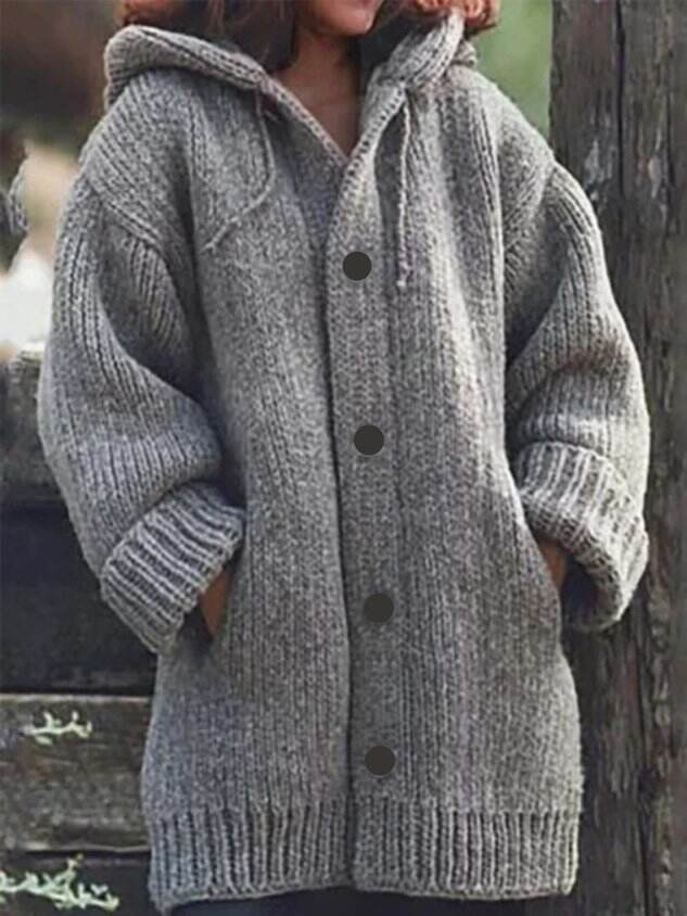 Button Down Hooded Knitted Cardigan Plus Size Knit coat For Women