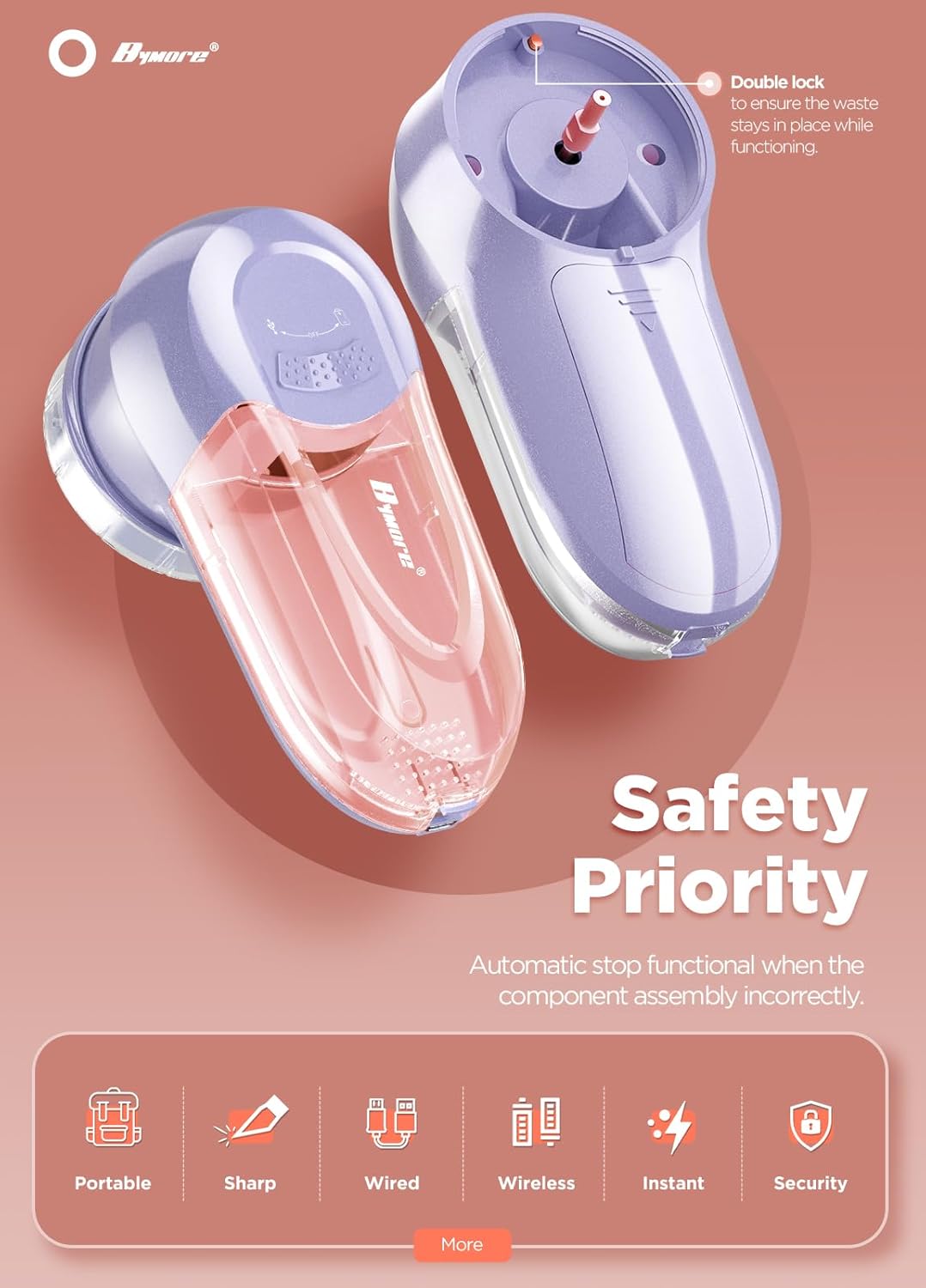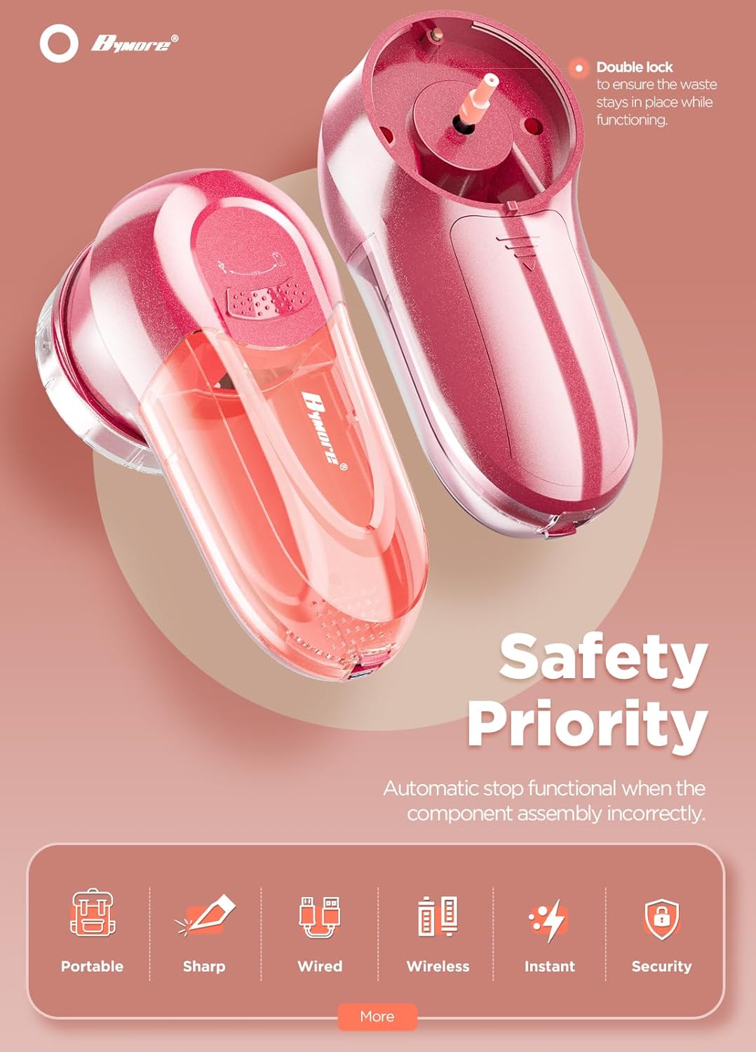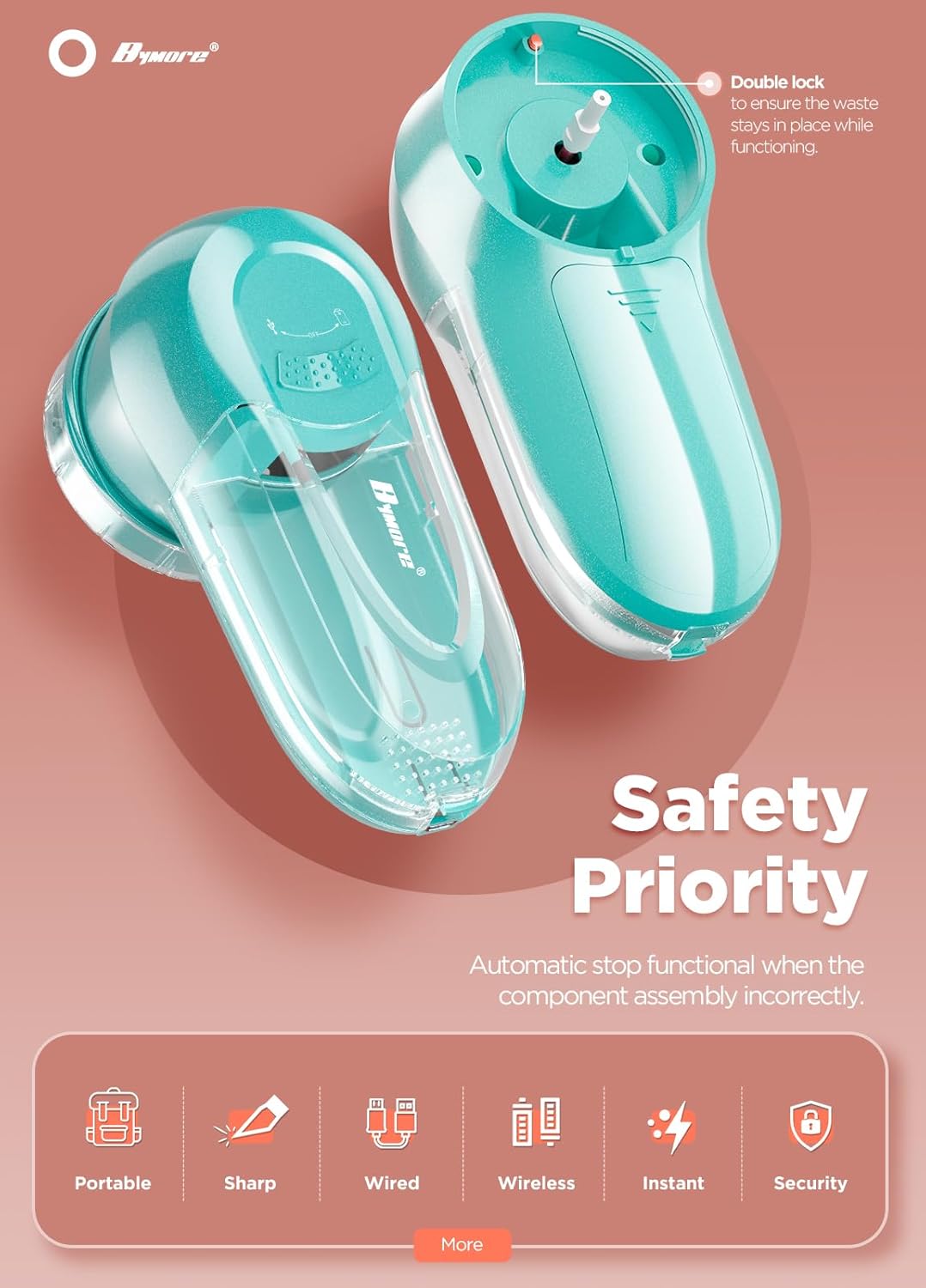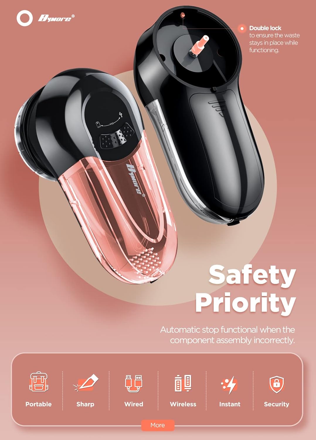 • Secure Sweater Shaver Container: Double lock container to prevent waste falling while using