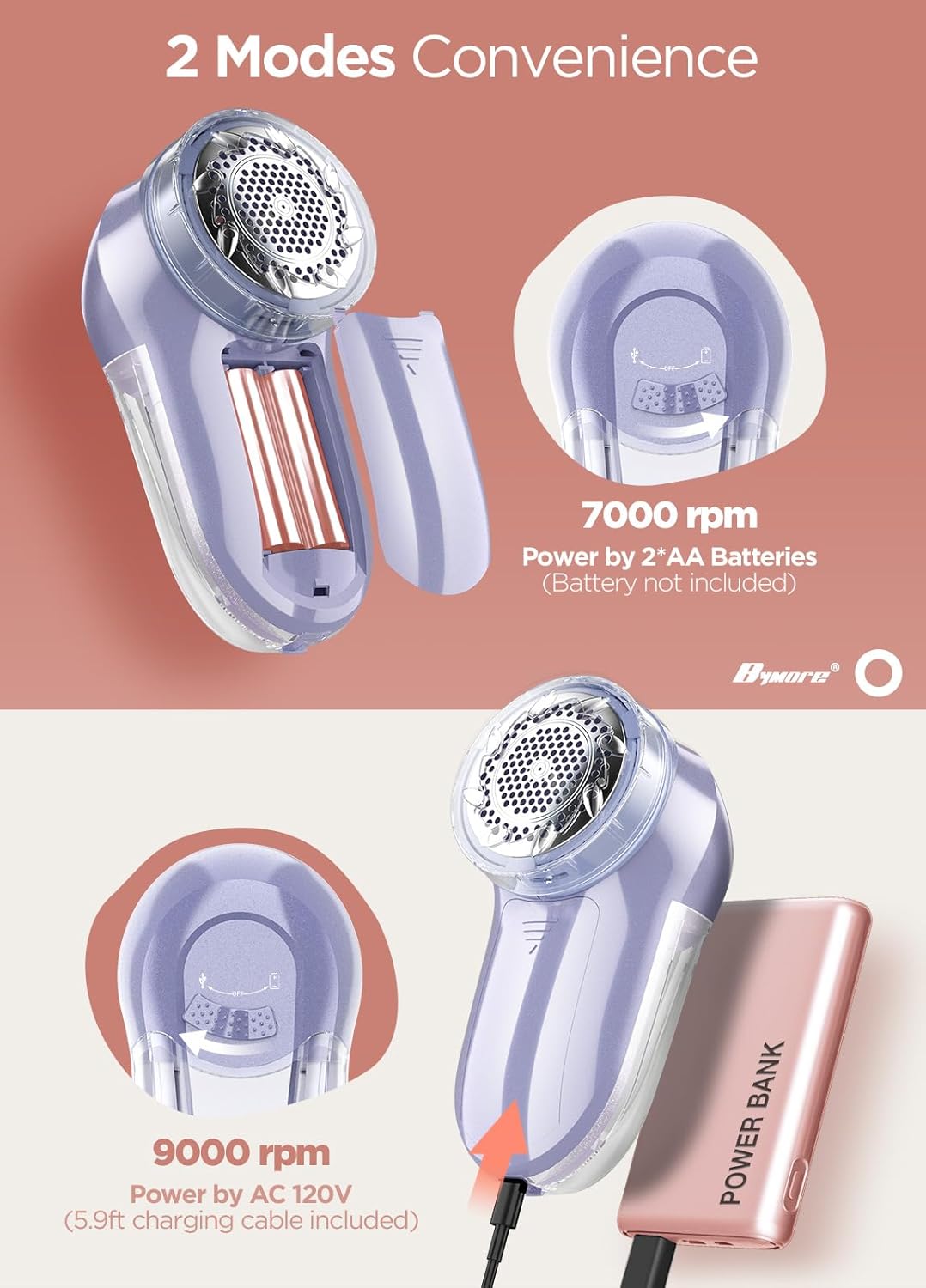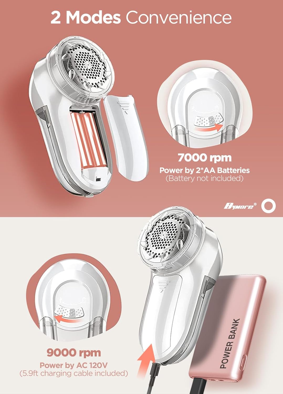 • Bymore Fabric Shaver, Lint Remover, Lint Shaver Defuzzer Sweater Shaver for Clothes and Furniture AC Adapter or Battery Operated Pill Fuzz Remover