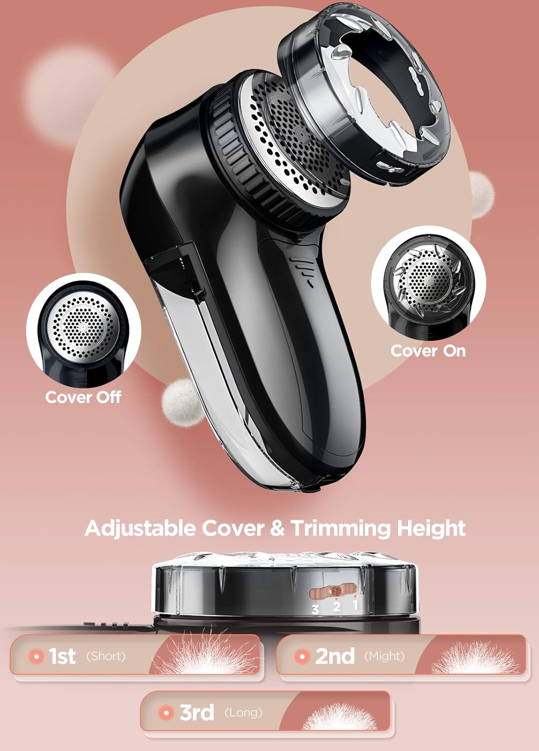 • Zero Risk Sweater Shaver: With three size honeycomb smooth surface and adjustable height, the sweater shaver is ideal for different lint types on clothes and furniture without damaging