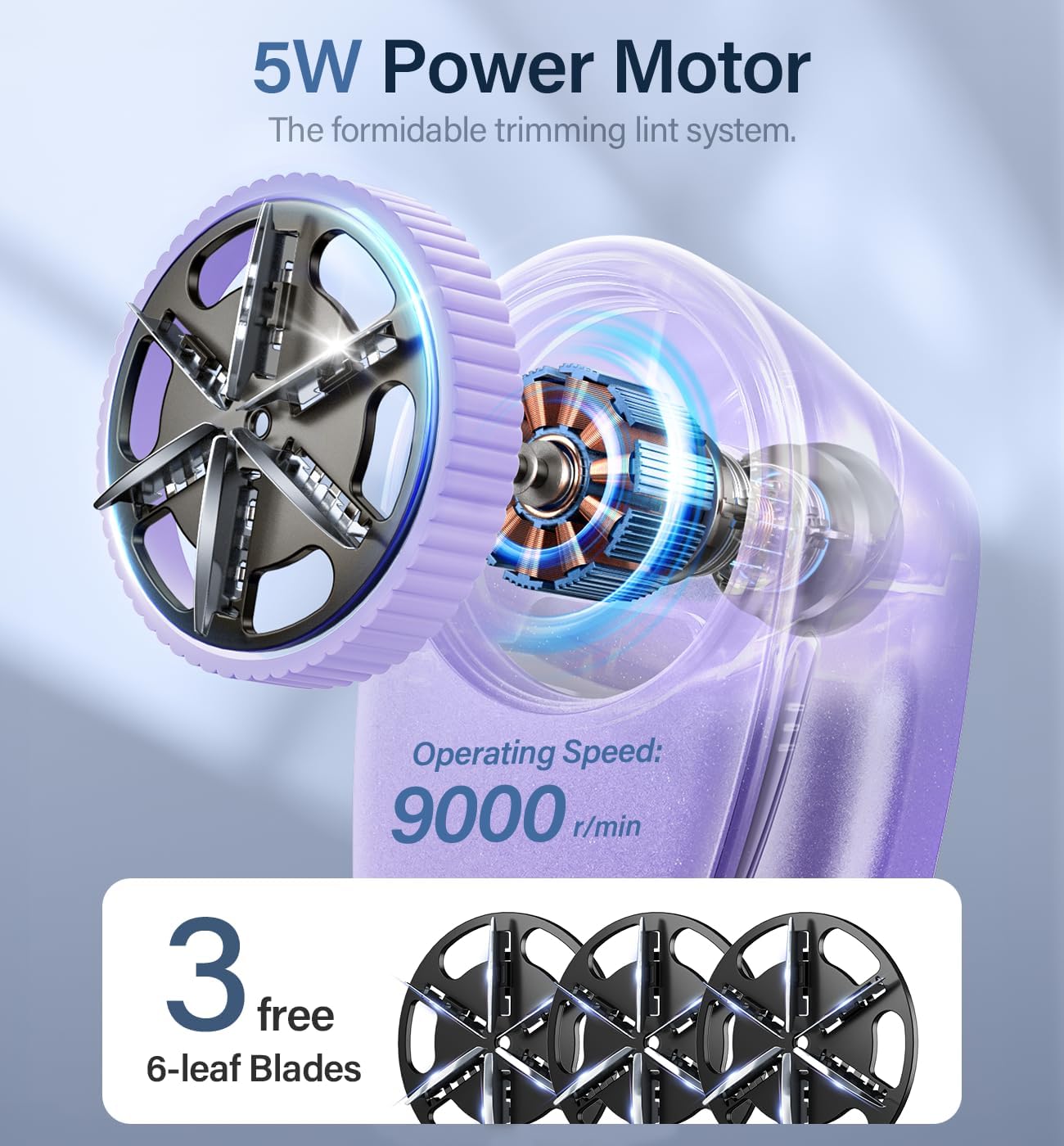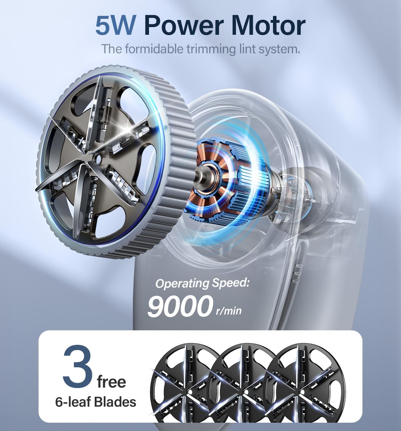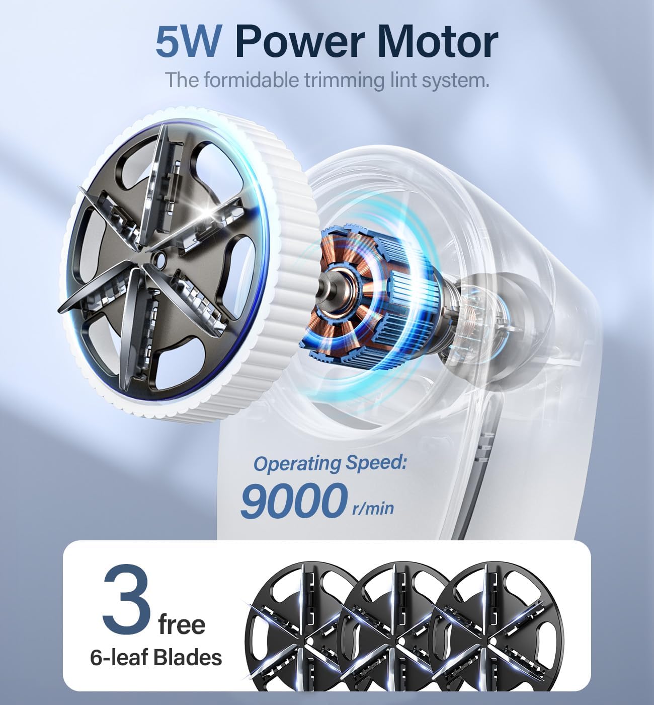 - TAKE CARE THE FABRIC METICULOUSLY: When the cover is loosened or removed, the Sweater Shaver will stop automatic to prevent hazards or damage to the material; The tailor made blades add extra protection to ensure the space of the unwanted fabric while trimming; Non deformable Stainless steel honeycomb mesh effectively reduces the friction of clothes; Made of non flammable material with smart IC chip to ensure safety use