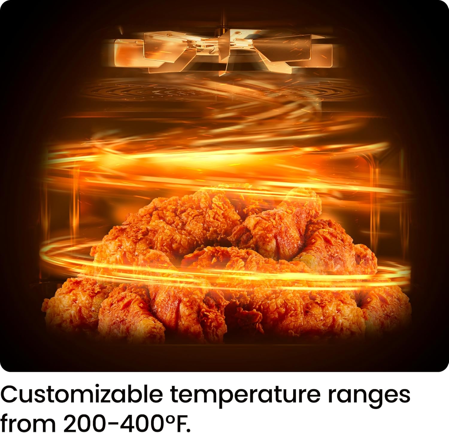 - PRECISE TEMPERATURES: Air Fryer XL Range from 200-400°F caters to every dish. Whether you desire less crunch or more, our air fryer large model has you covered.