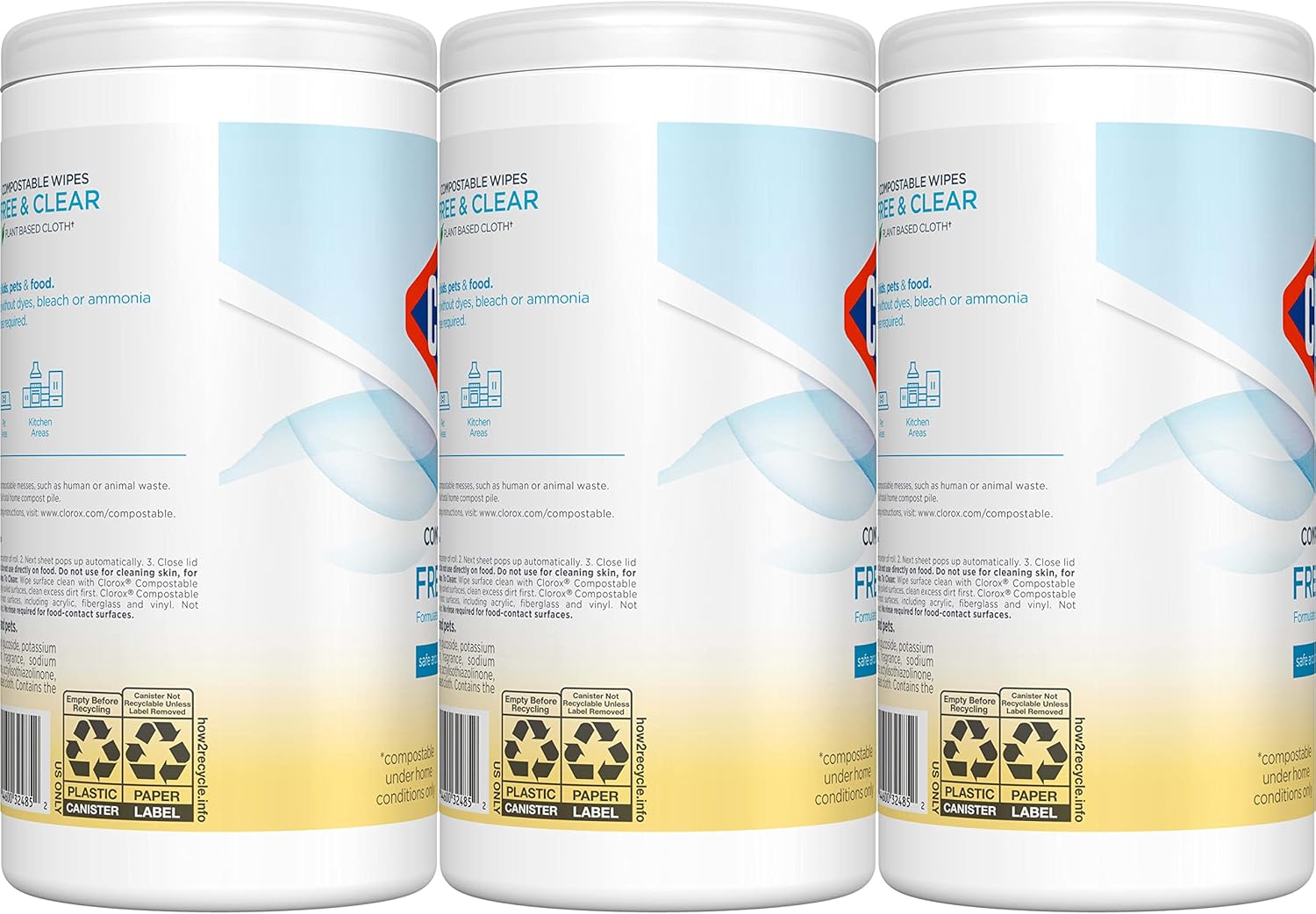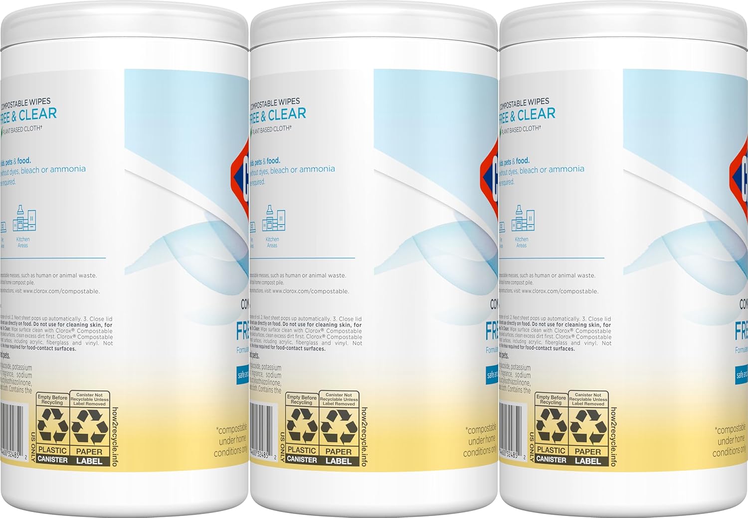 - FAMILY FRIENDLY: Clorox Free & Clear Compostable Wipes are formulated without dyes, bleach or ammonia to get the surface clean you want from the brand you trust