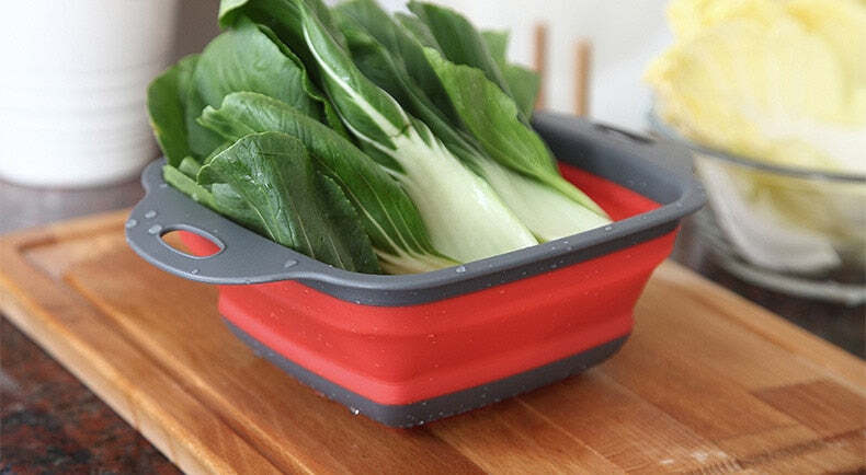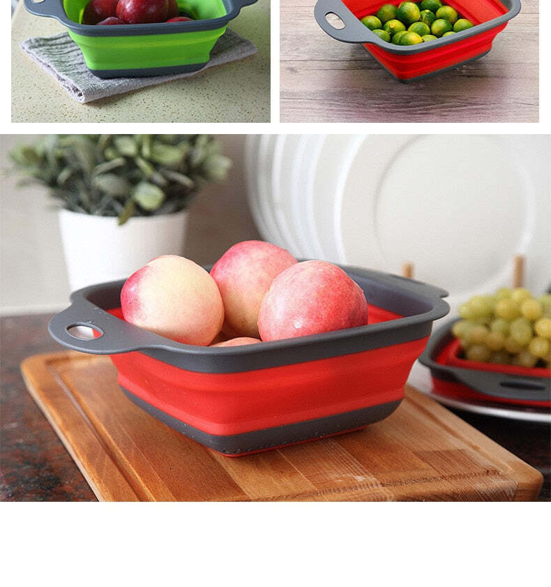 • Silicone Folding Drain Basket Fruit Vegetable Washing Basket Foldable Strainer Colander Collapsible Drainer Kitchen Storage Tool