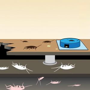Roaches enter station and eat the bait. They take the bait back to the nest, share the bait, killing other roaches and destroying the nest.