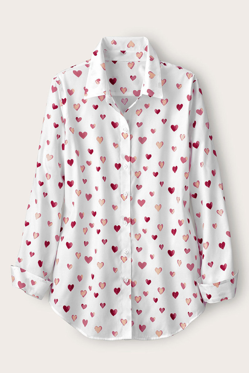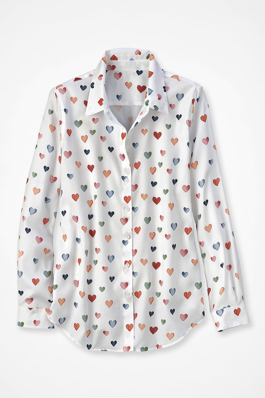 Color yourself happy, twice over – with a fresh watercolor-hearts print in our wrinkle-free fabric.