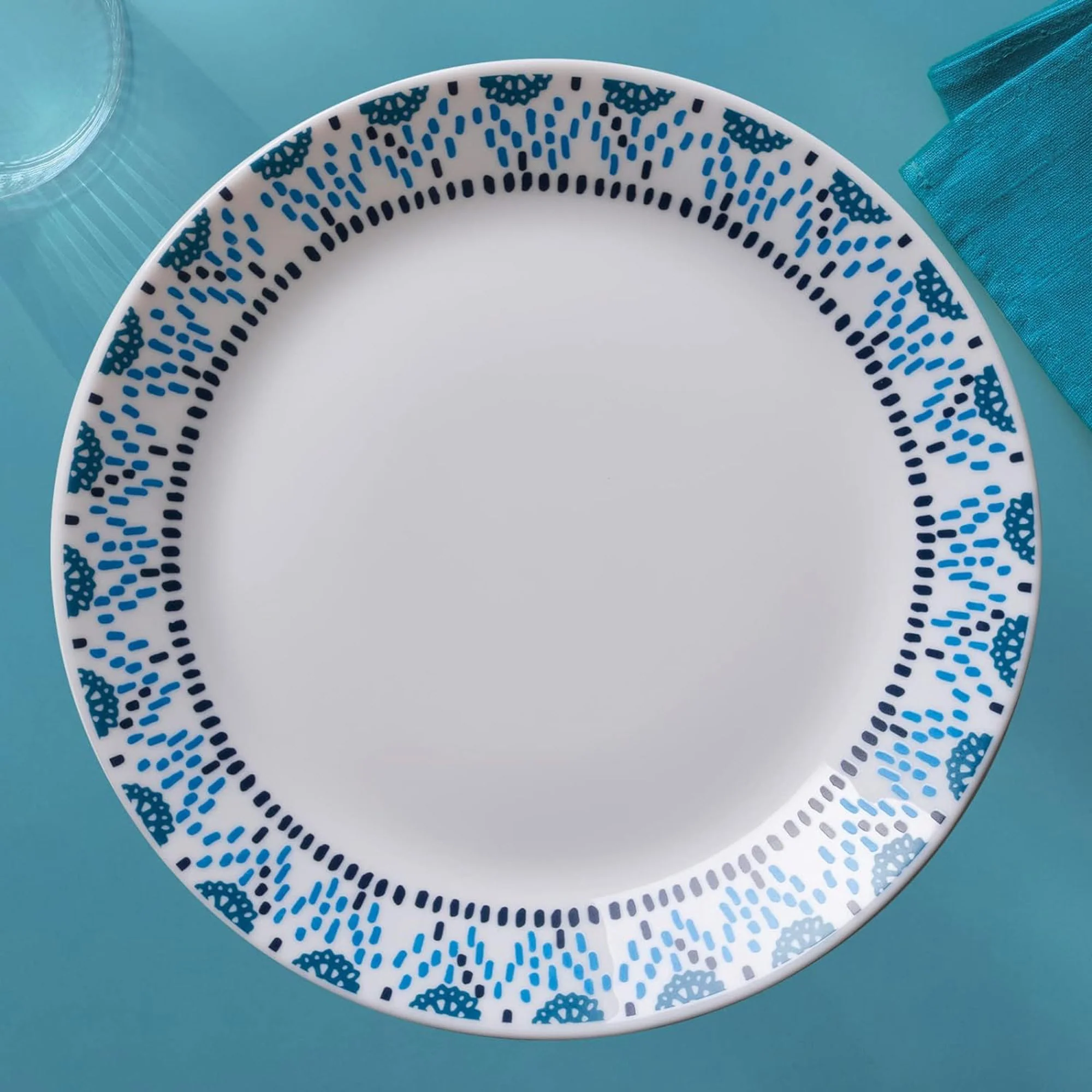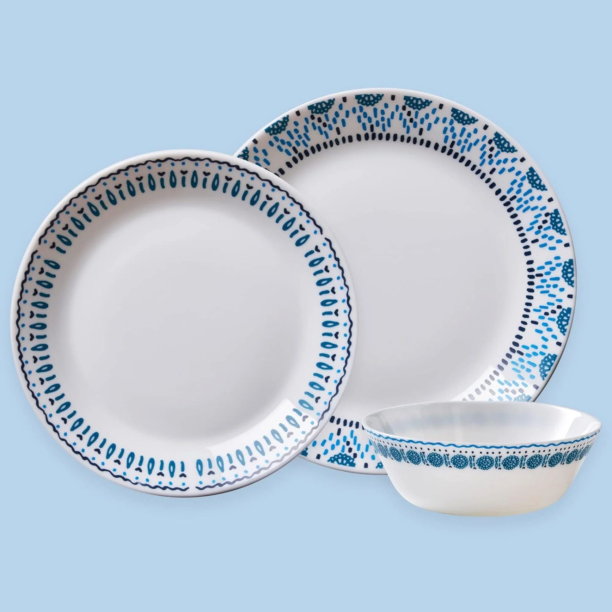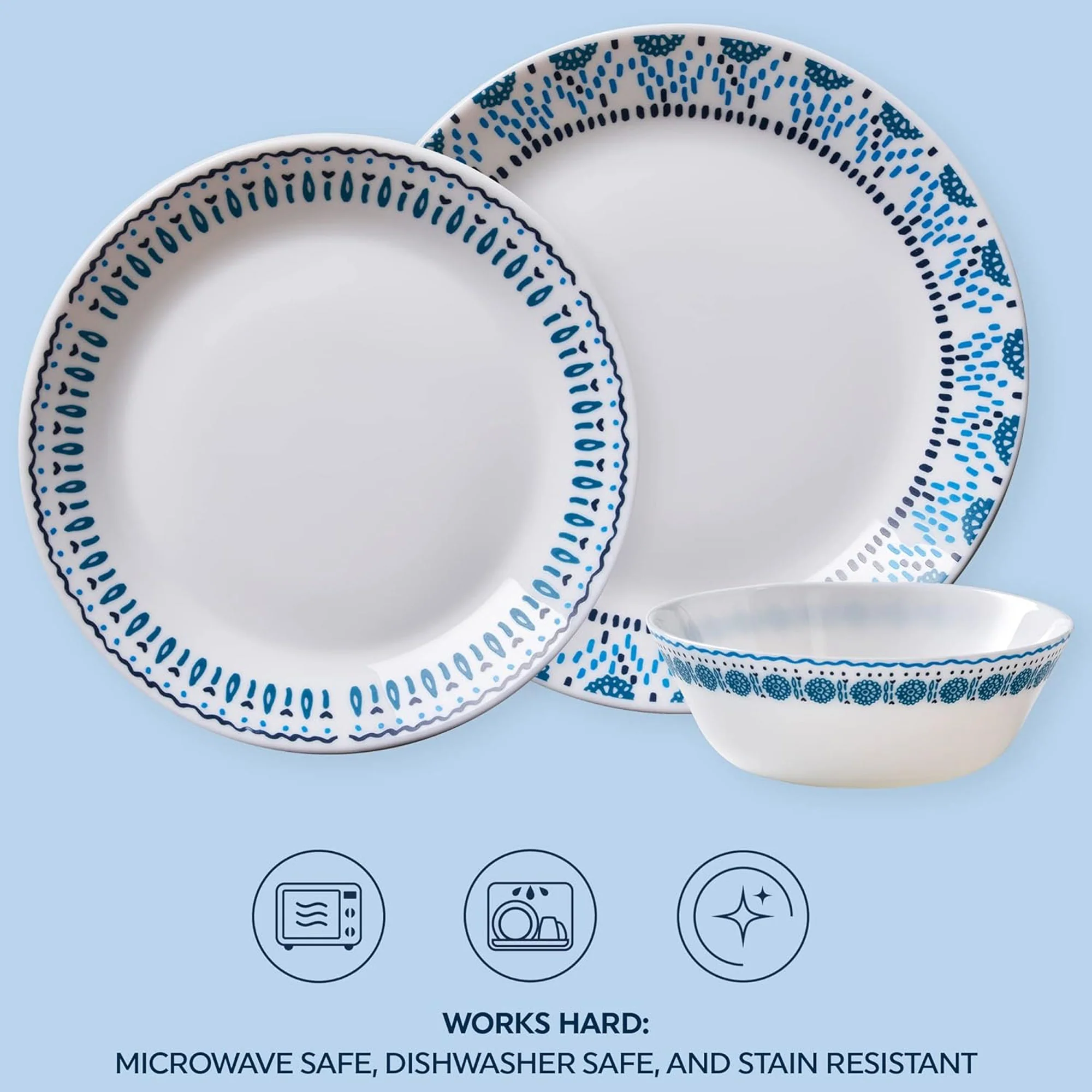 Ditch the boring dinnerware routine! Corelle's Everyday Expressions 12-Piece Dinnerware Set in Azure Medallion is your ticket to a stylish and sustainable table. This service for four features a captivating medallion design in a cool, calming blue on a crisp white background. But the beauty doesn't stop there �?these dishes are crafted from Corelle's durable Vitrelle glass, making them chip, crack, and scratch-resistant. Plus, they're crafted with eco-conscious materials, so you can feel good about setting the table.